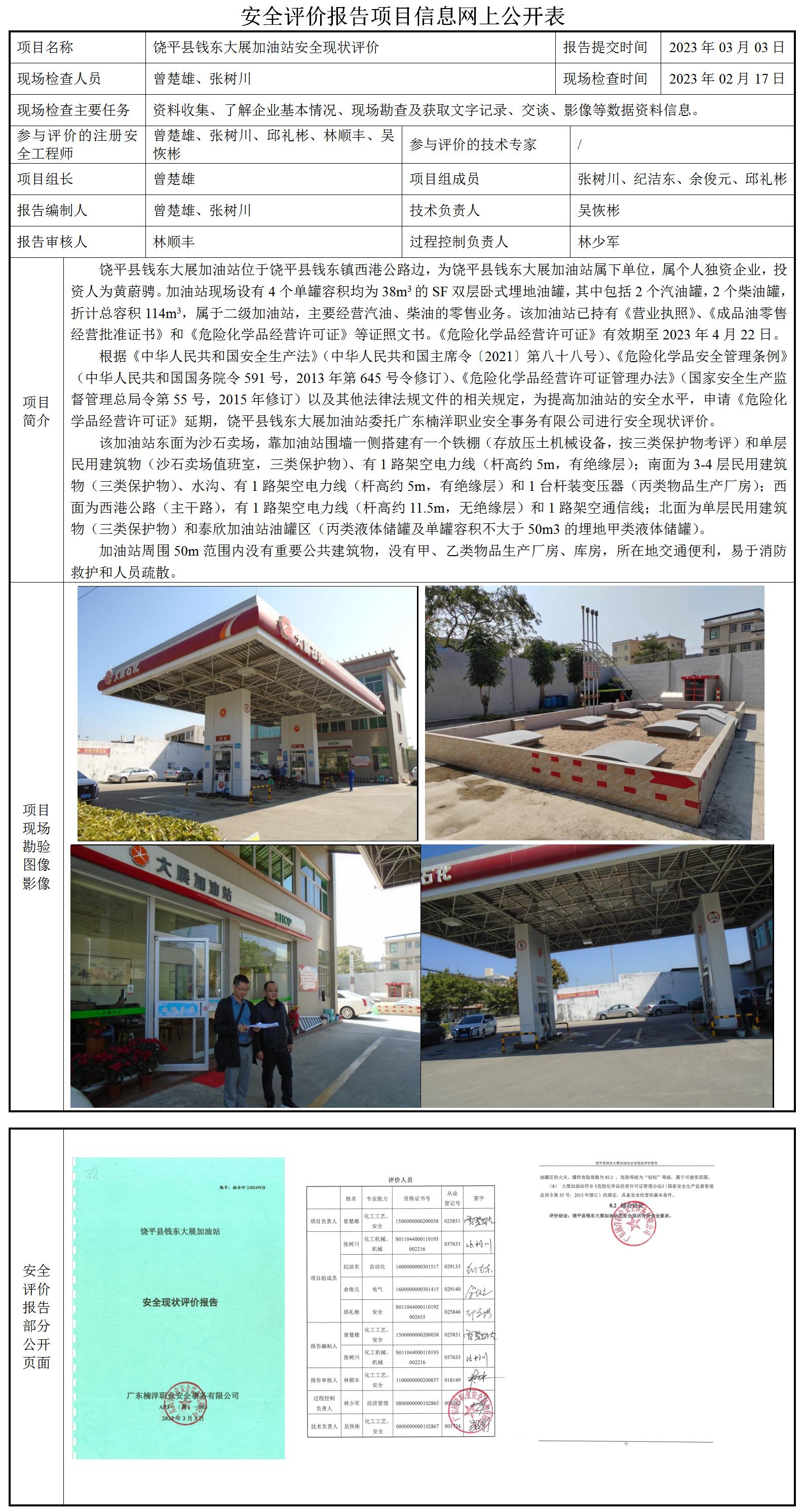潮州市潮安区彩塘大众加油站有限公司安全现状评价