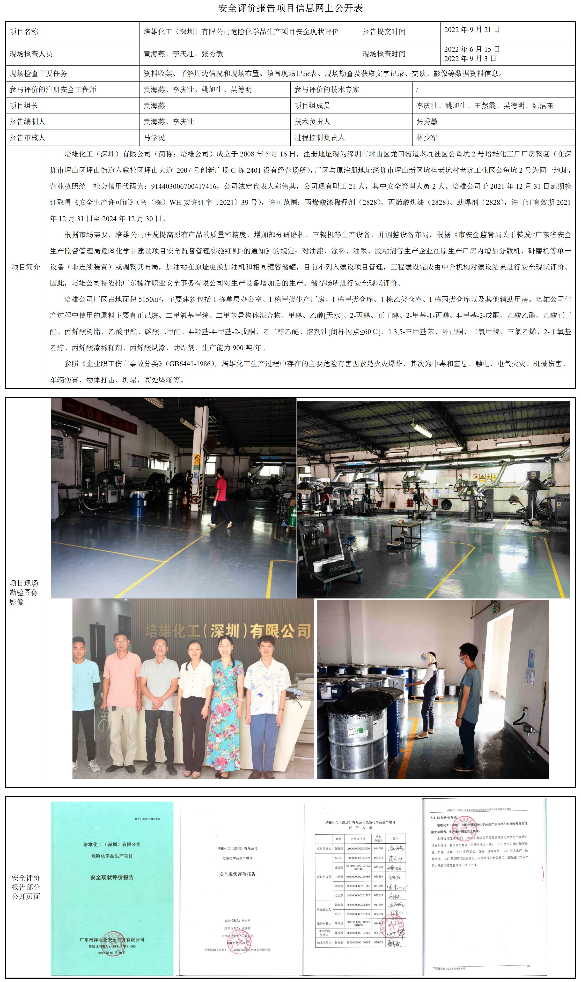 培雄化工(深圳)有限公司危险化学品生产项目安全现状评价