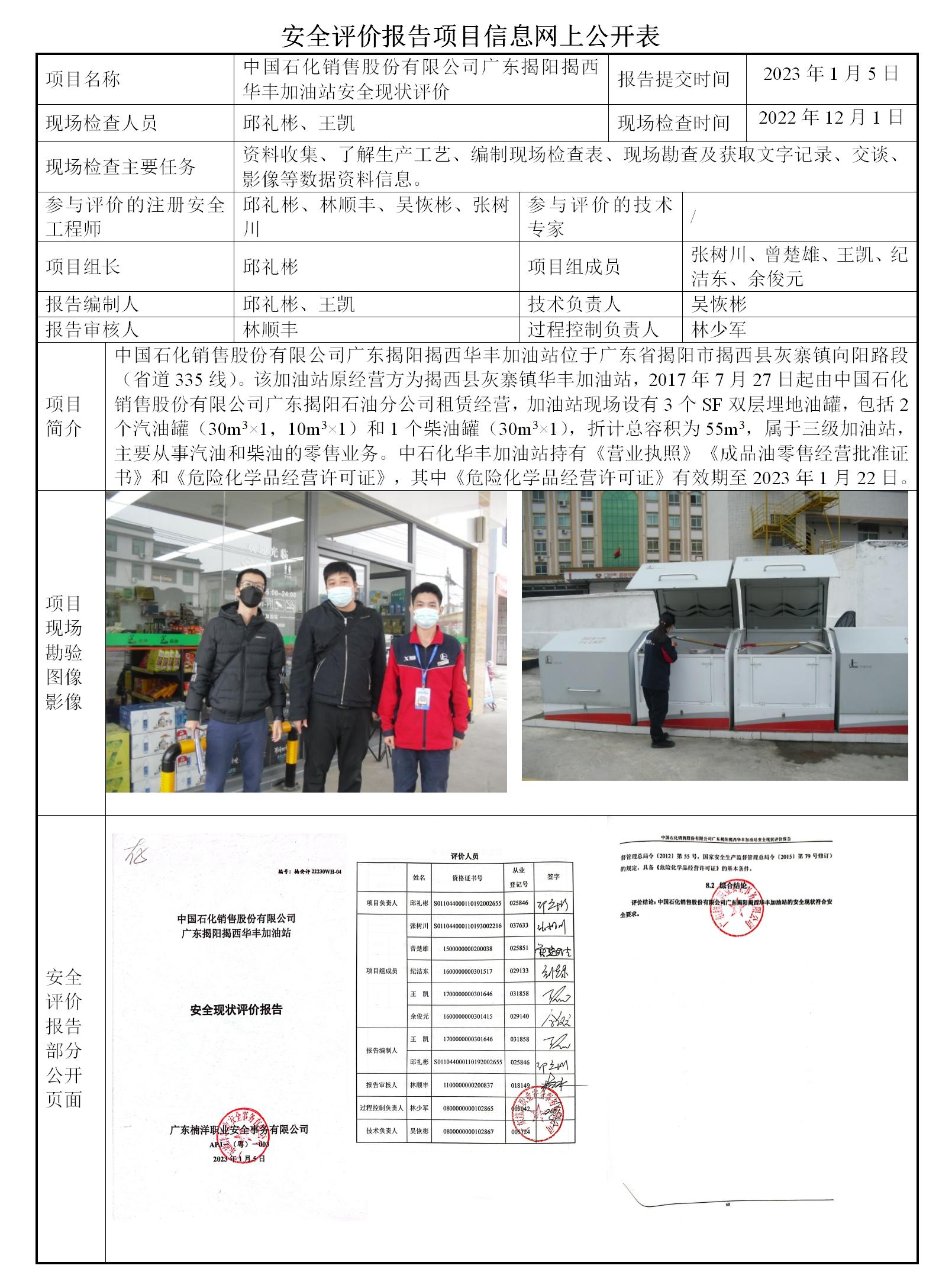 中国石化销售股份有限公司广东揭阳揭西华丰加油站安全现状评价