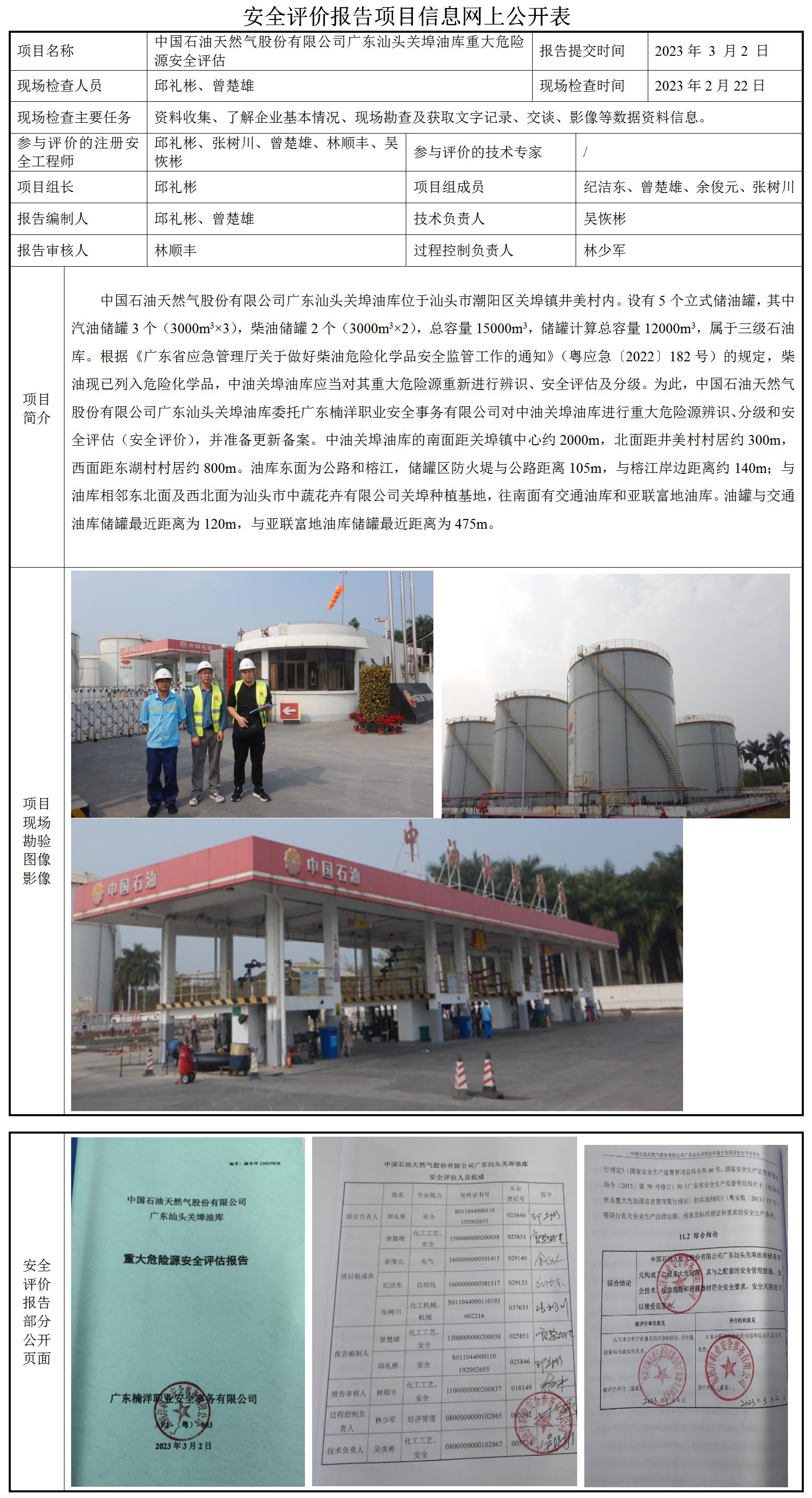 中国石油天然气股份有限公司广东汕头关埠油库重大危险源安全评估