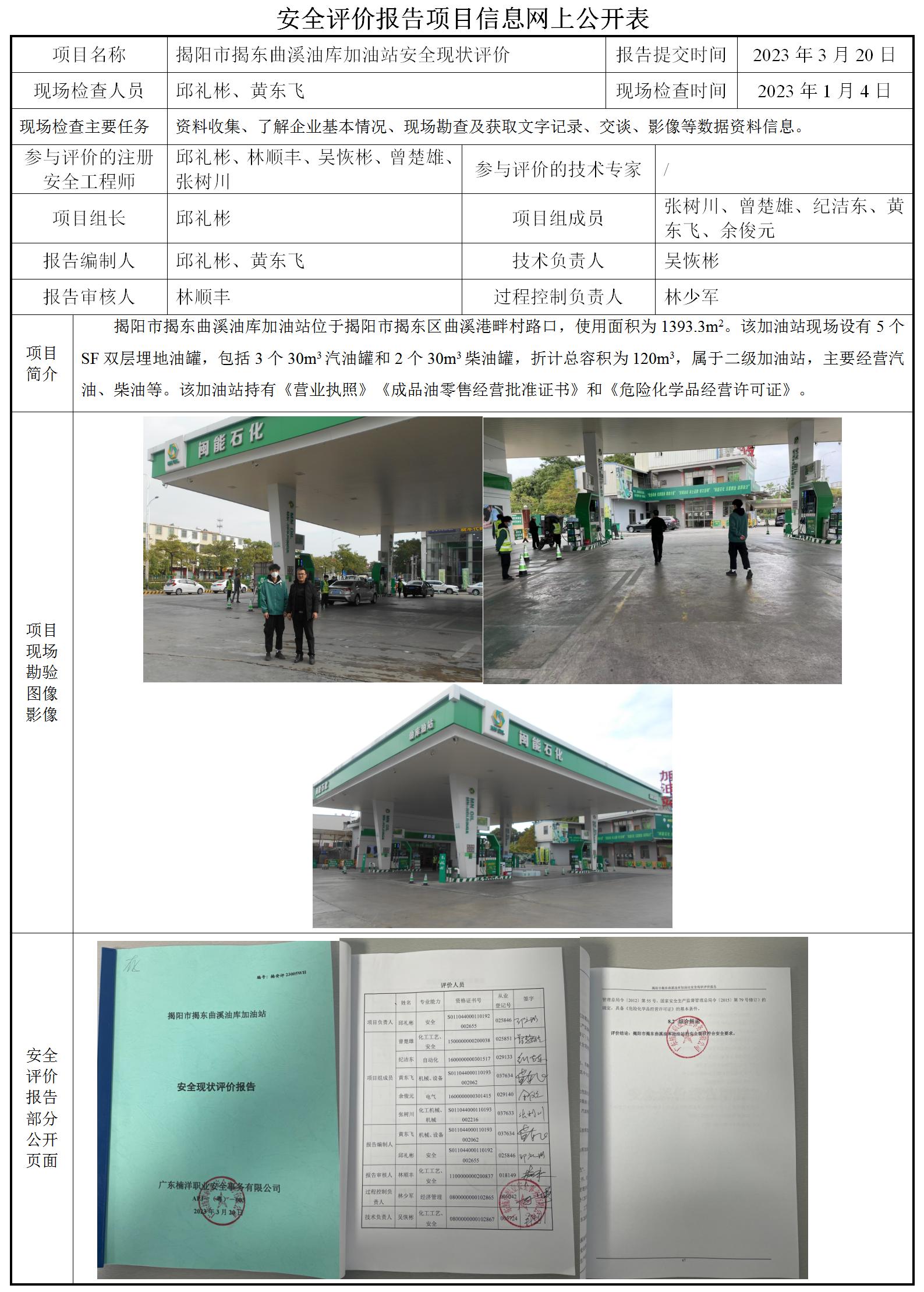 揭阳市揭东曲溪油库加油站安全现状评价