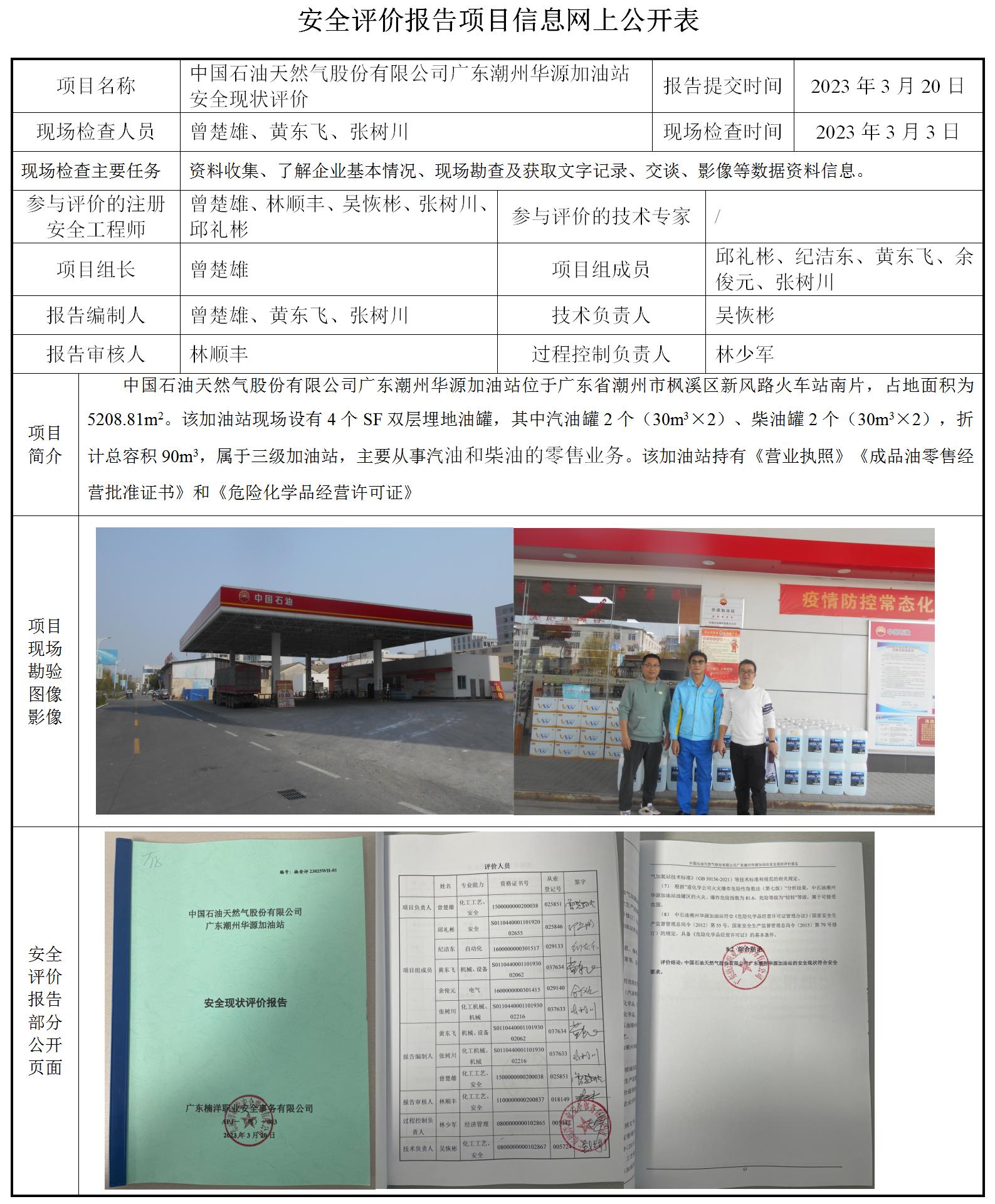 中国石油天然气股份有限公司广东潮州华源加油站安全现状评价
