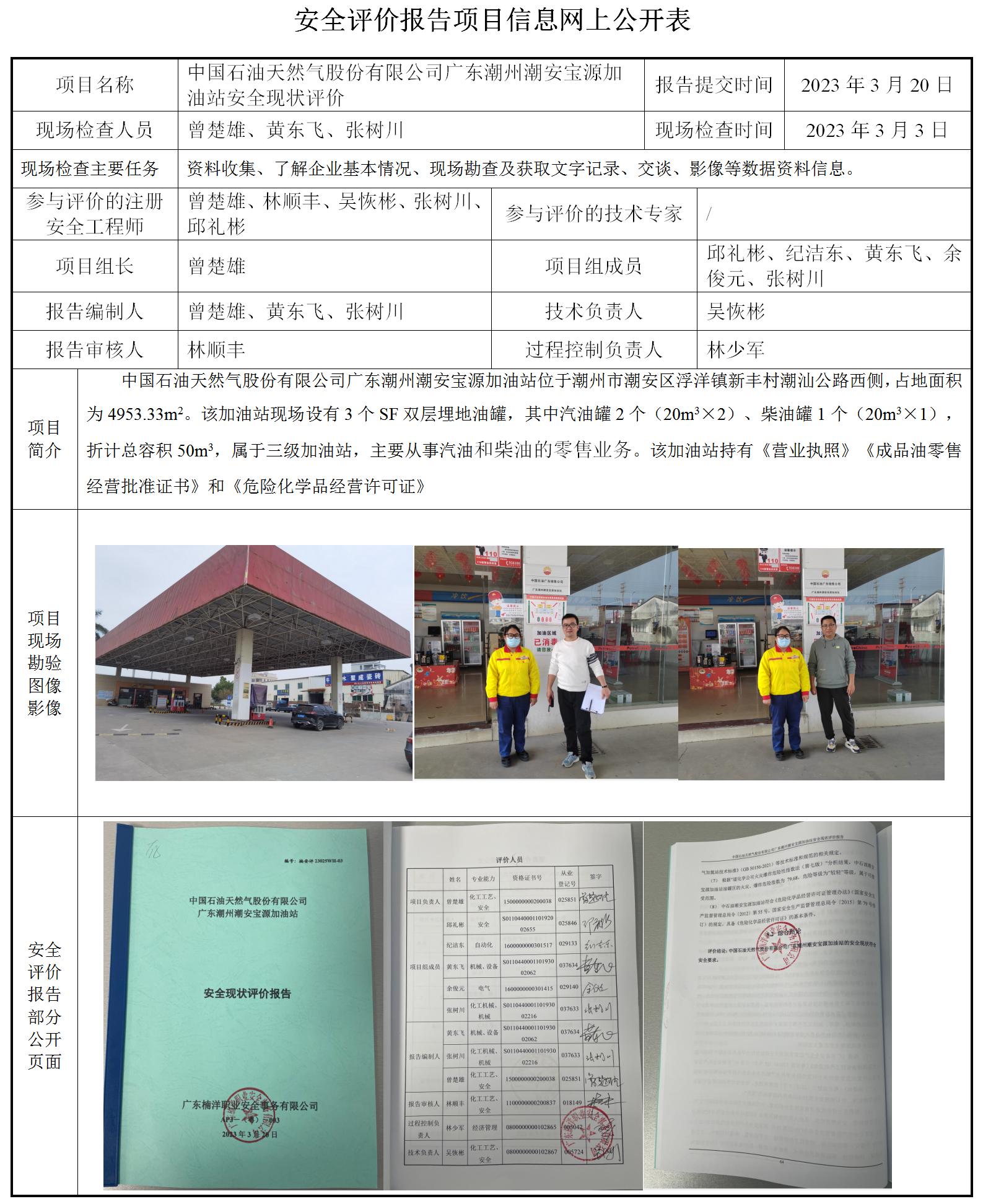 中国石油天然气股份有限公司广东潮州潮安宝源加油站安全现状评价
