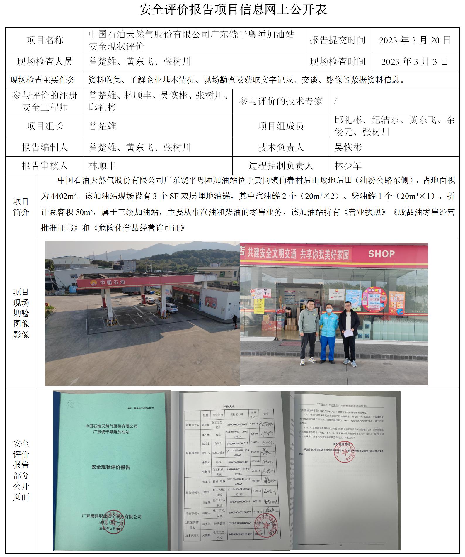 中国石油天然气股份有限公司广东饶平粤陲加油站安全现状评价