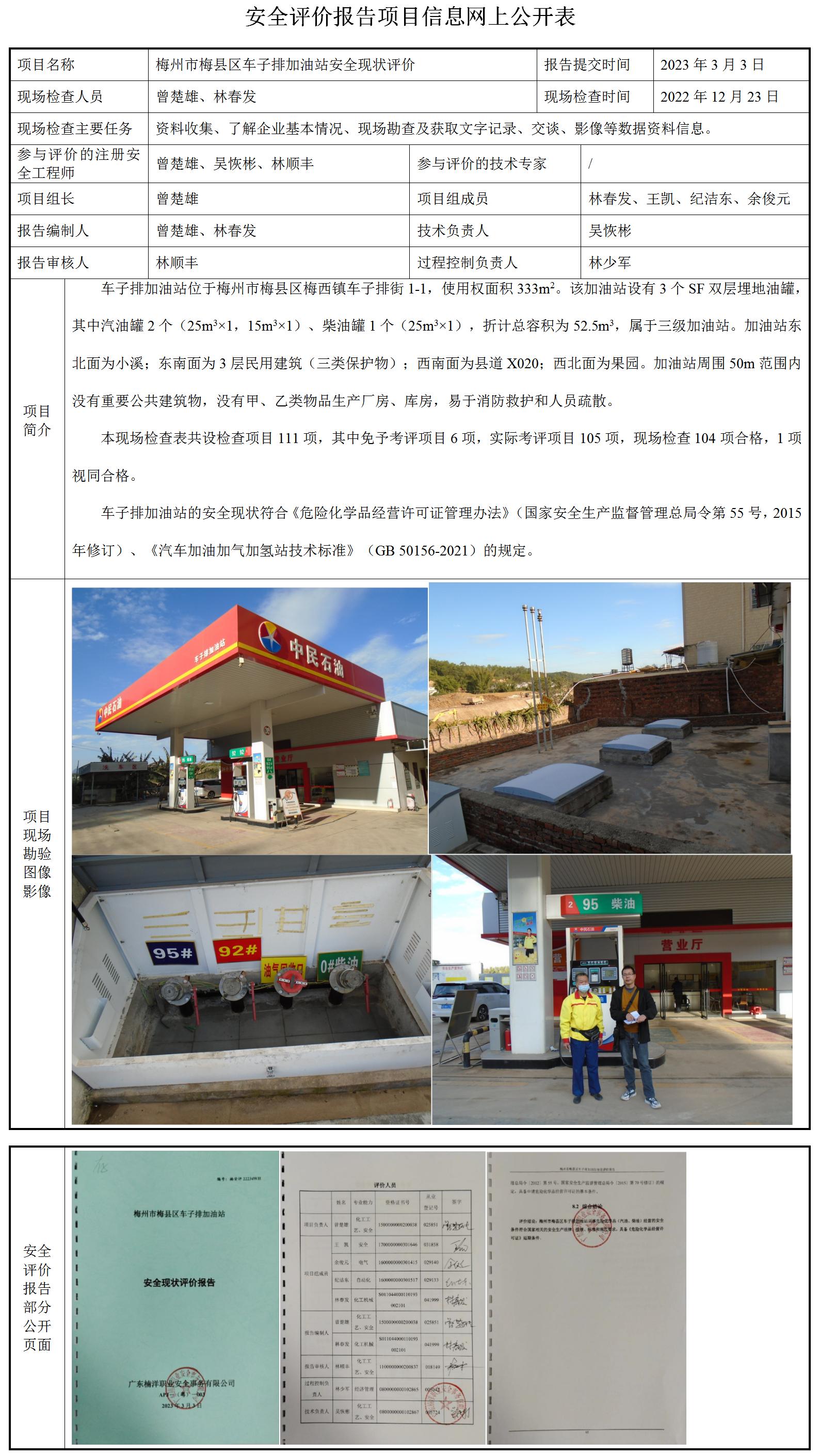 梅州市梅县区车子排加油站安全现状评价