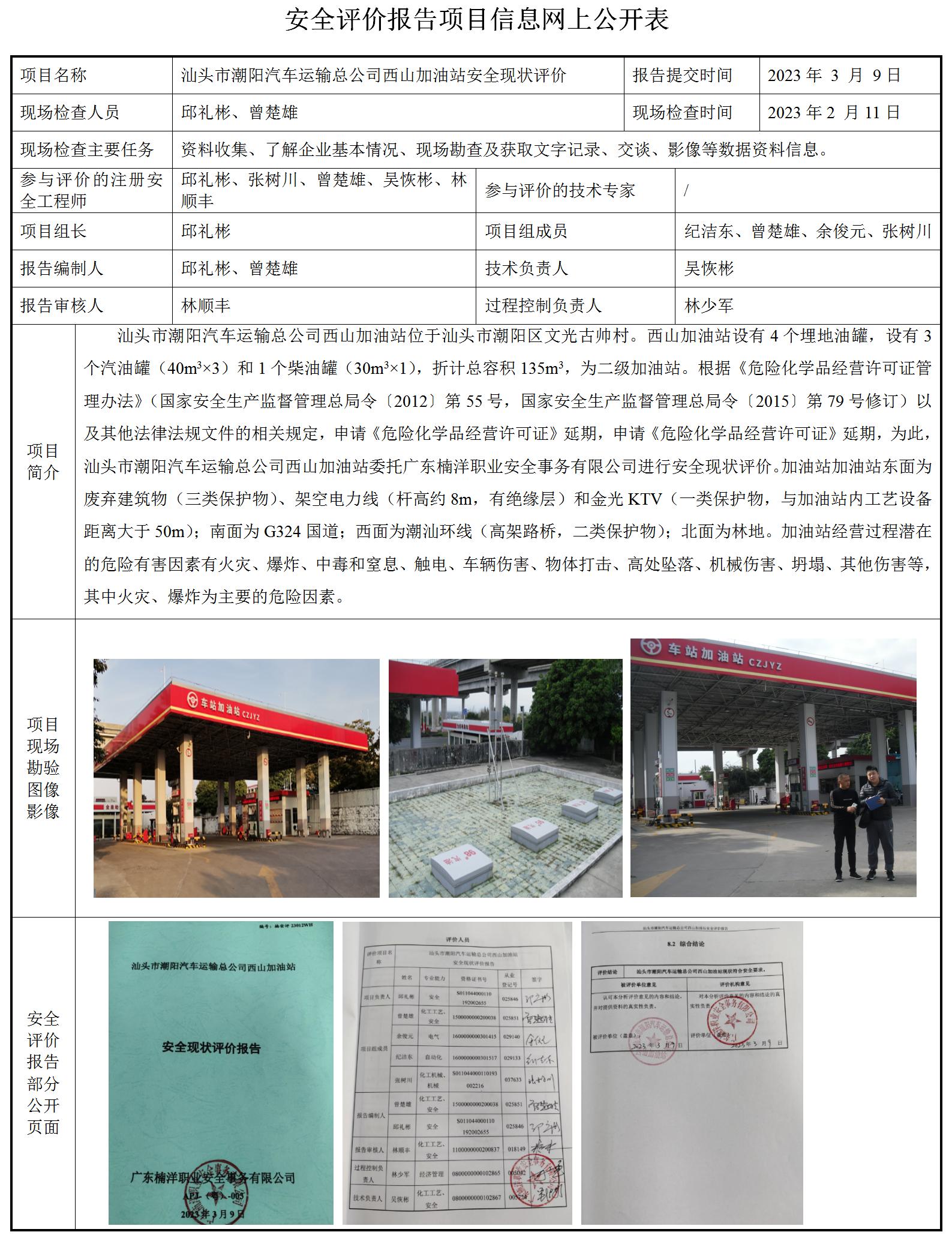 汕头市潮阳汽车运输总公司西山加油站安全现状评价
