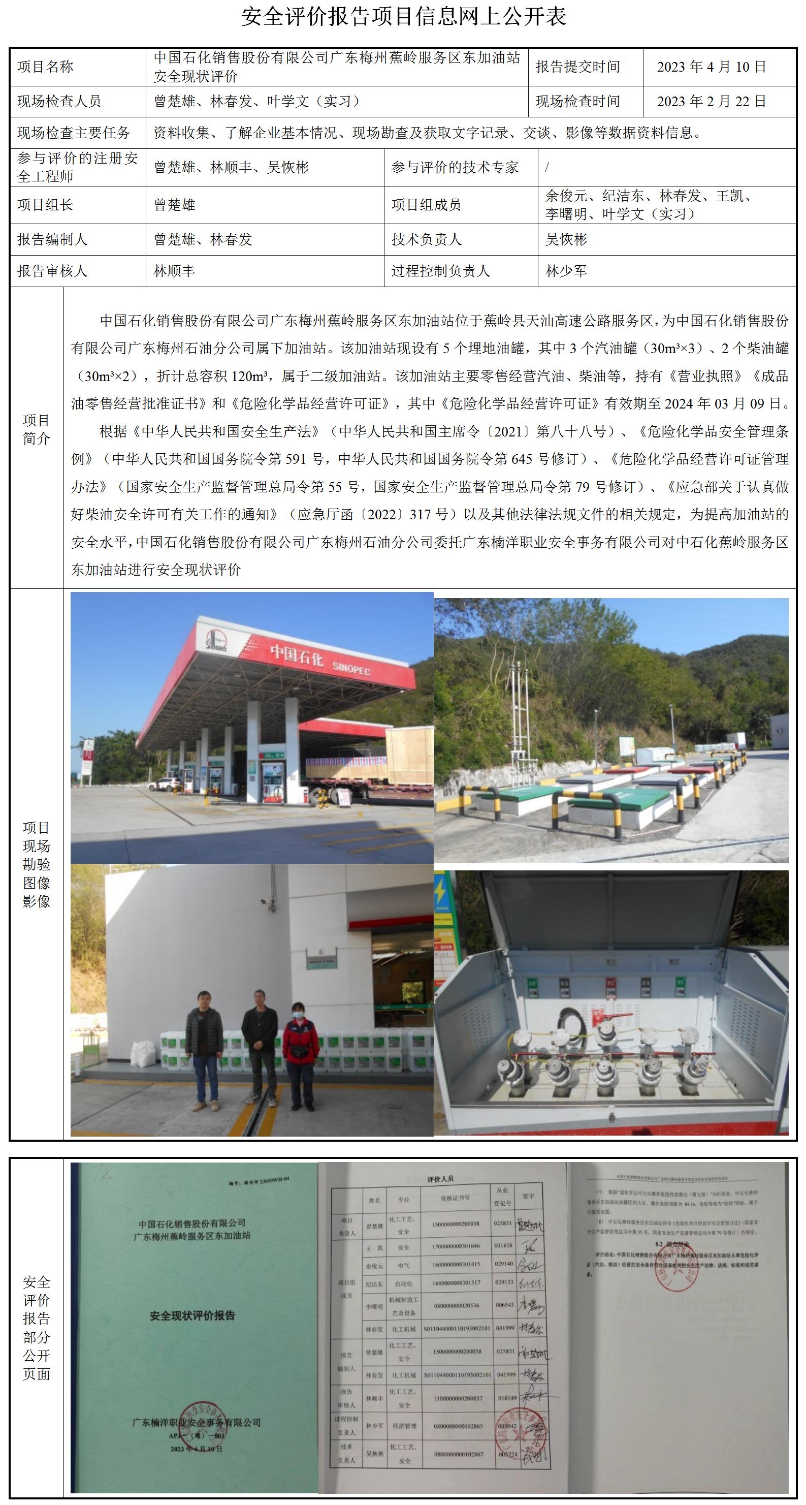 中国石化销售股份有限公司广东梅州蕉岭服务区东加油站安全现状评价