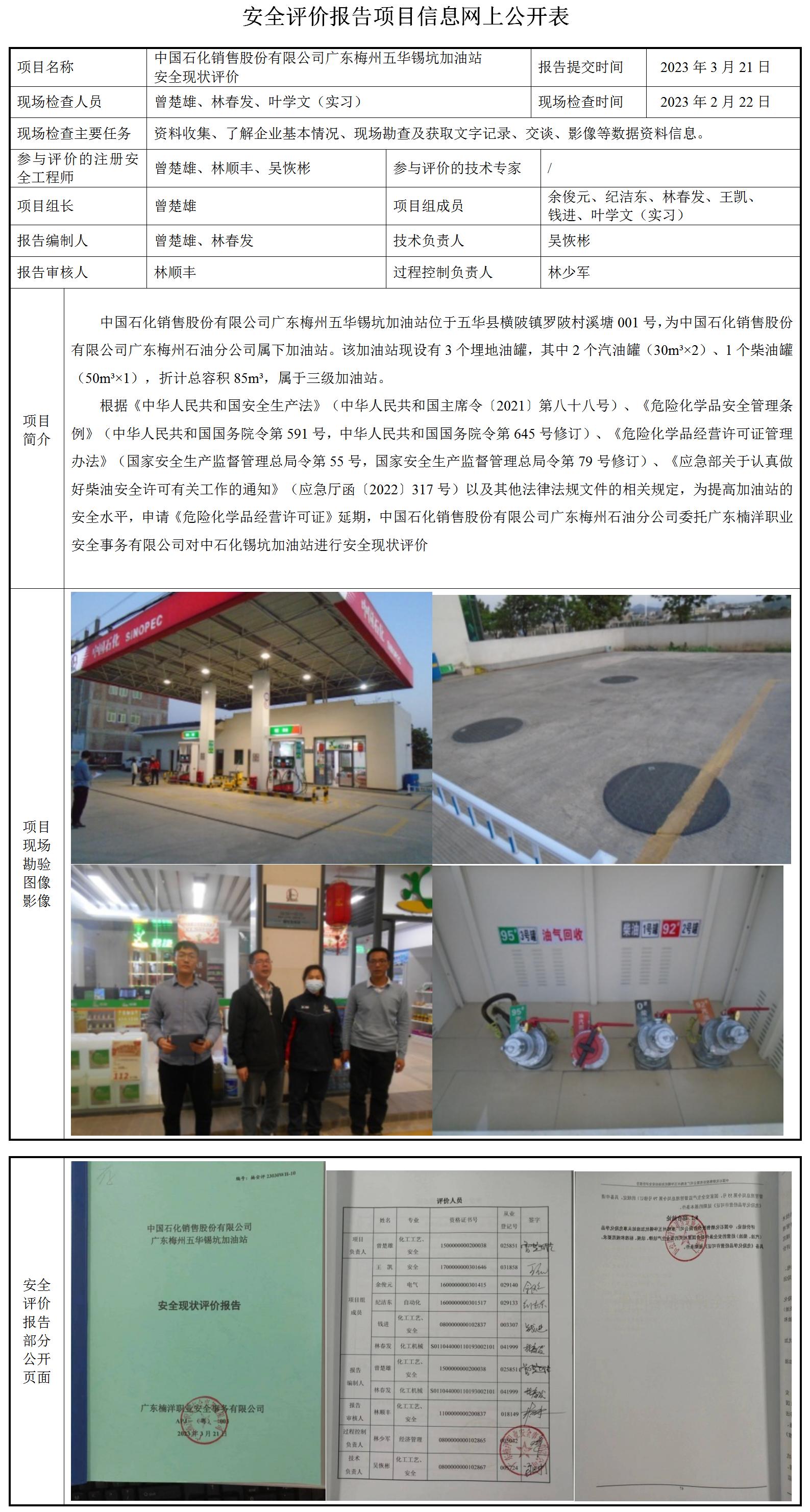 中国石化销售股份有限公司广东梅州五华锡坑加油站安全现状评价