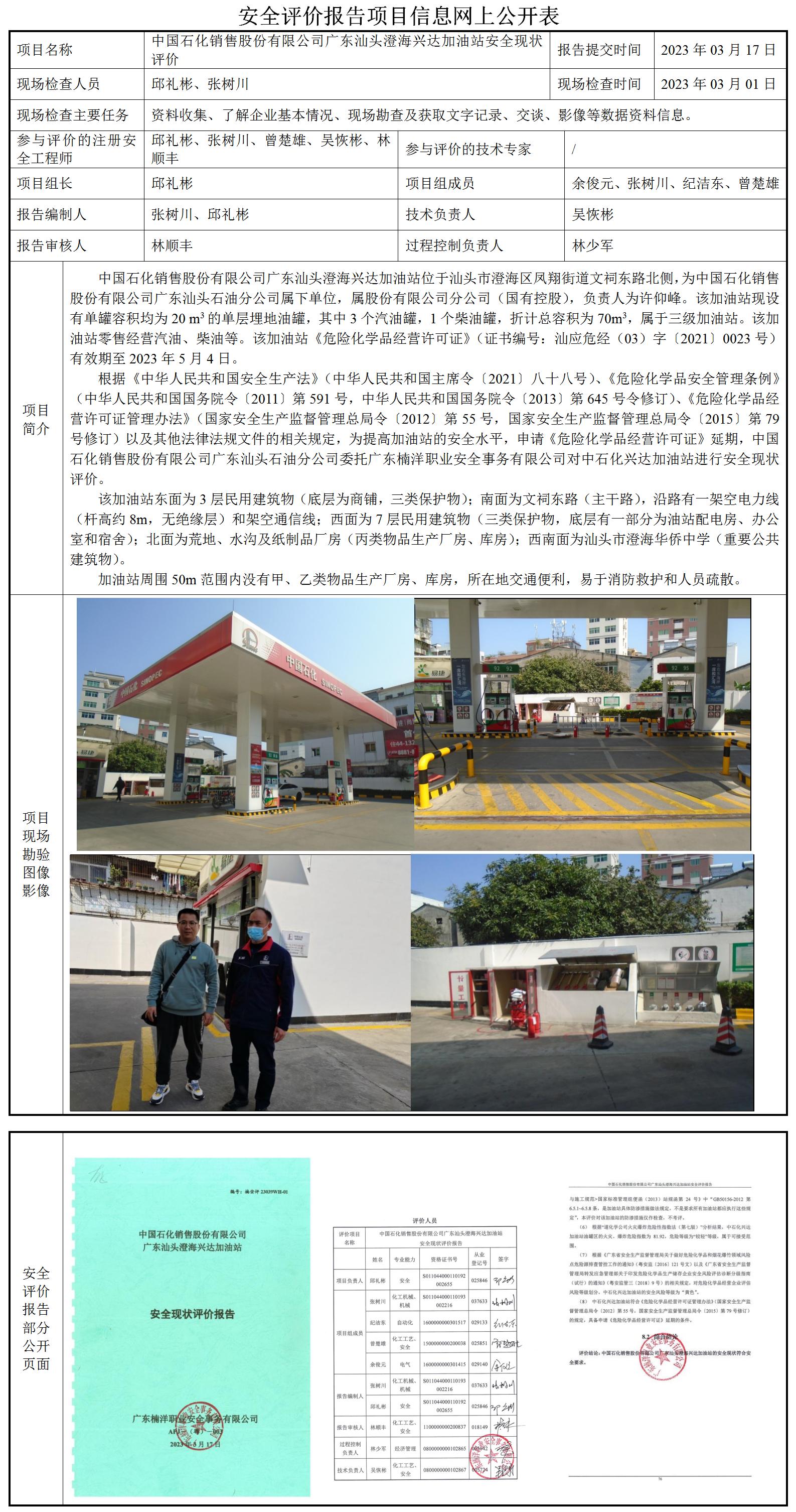 中国石化销售股份有限公司广东汕头澄海兴达加油站安全现状评价
