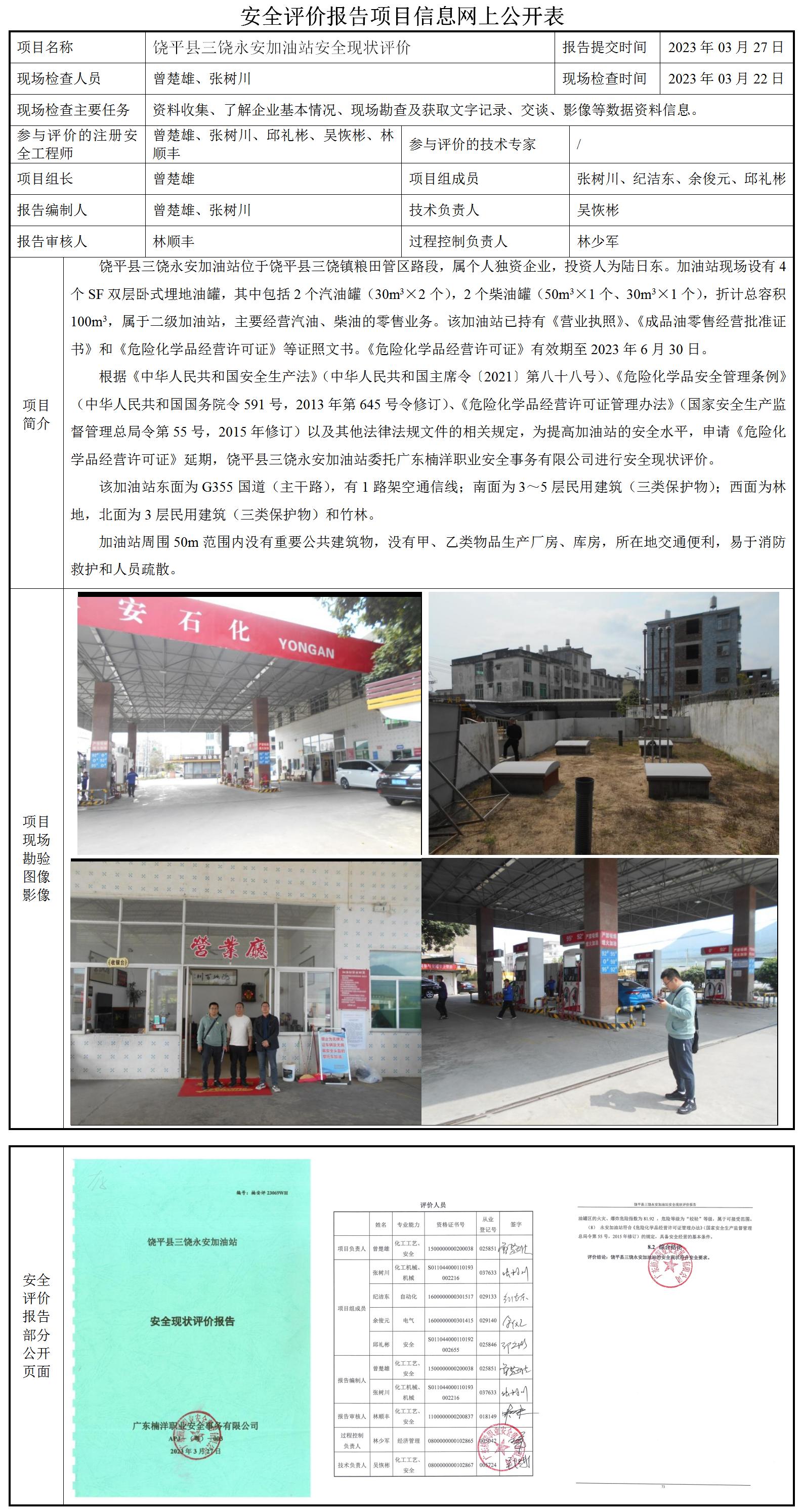 饶平县三饶永安加油站安全现状评价