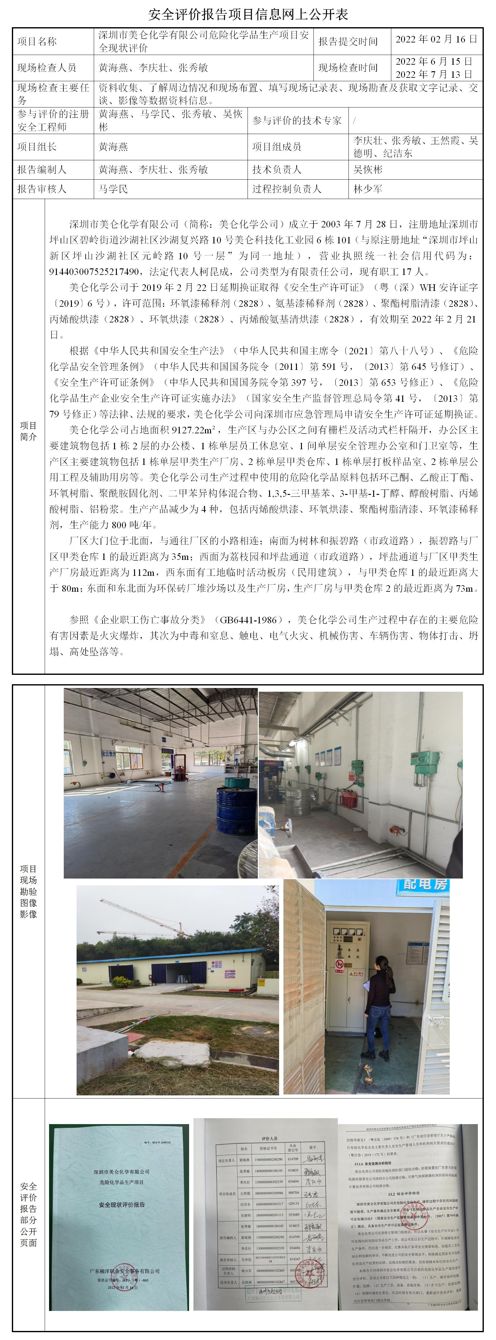 深圳市美仑化学有限公司危险化学品生产项目安全现状评价