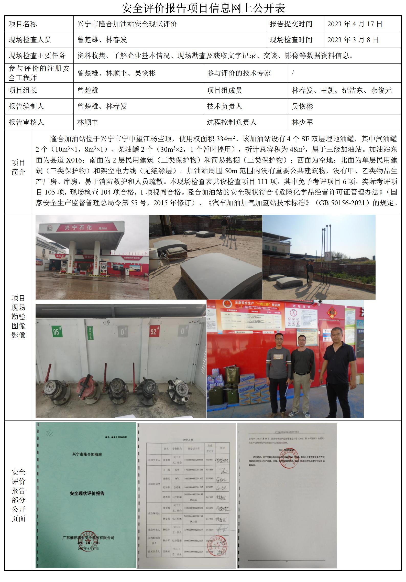 中国石化销售股份有限公司广东梅州兴宁向阳加油站安全现状评价