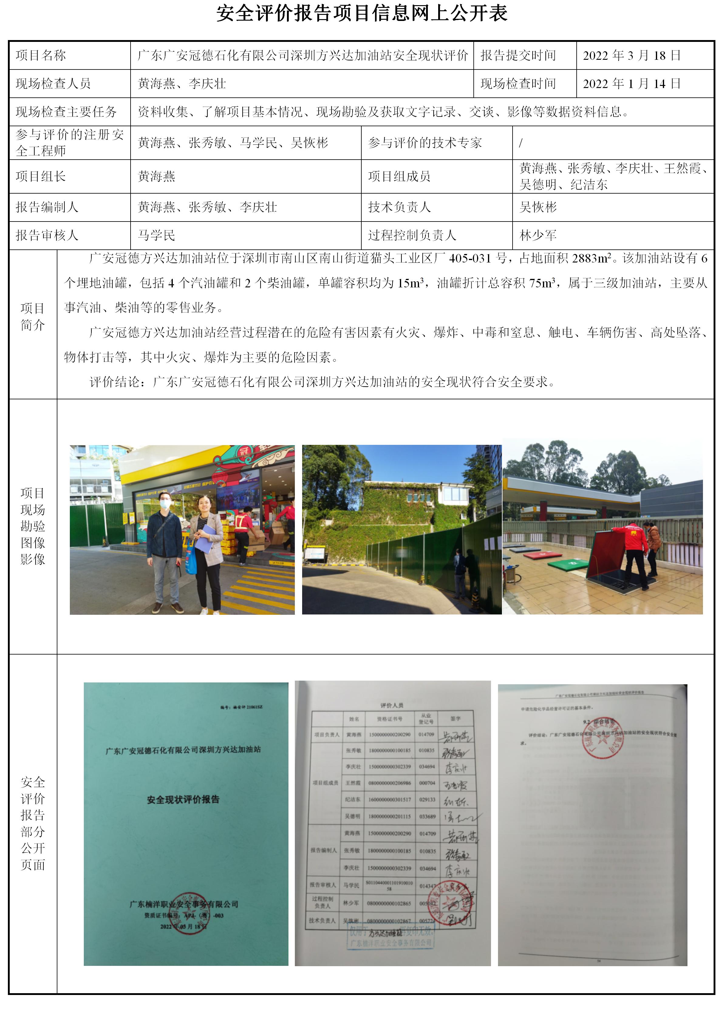 广东广安冠德石化有限公司深圳方兴达加油站安全现状评价