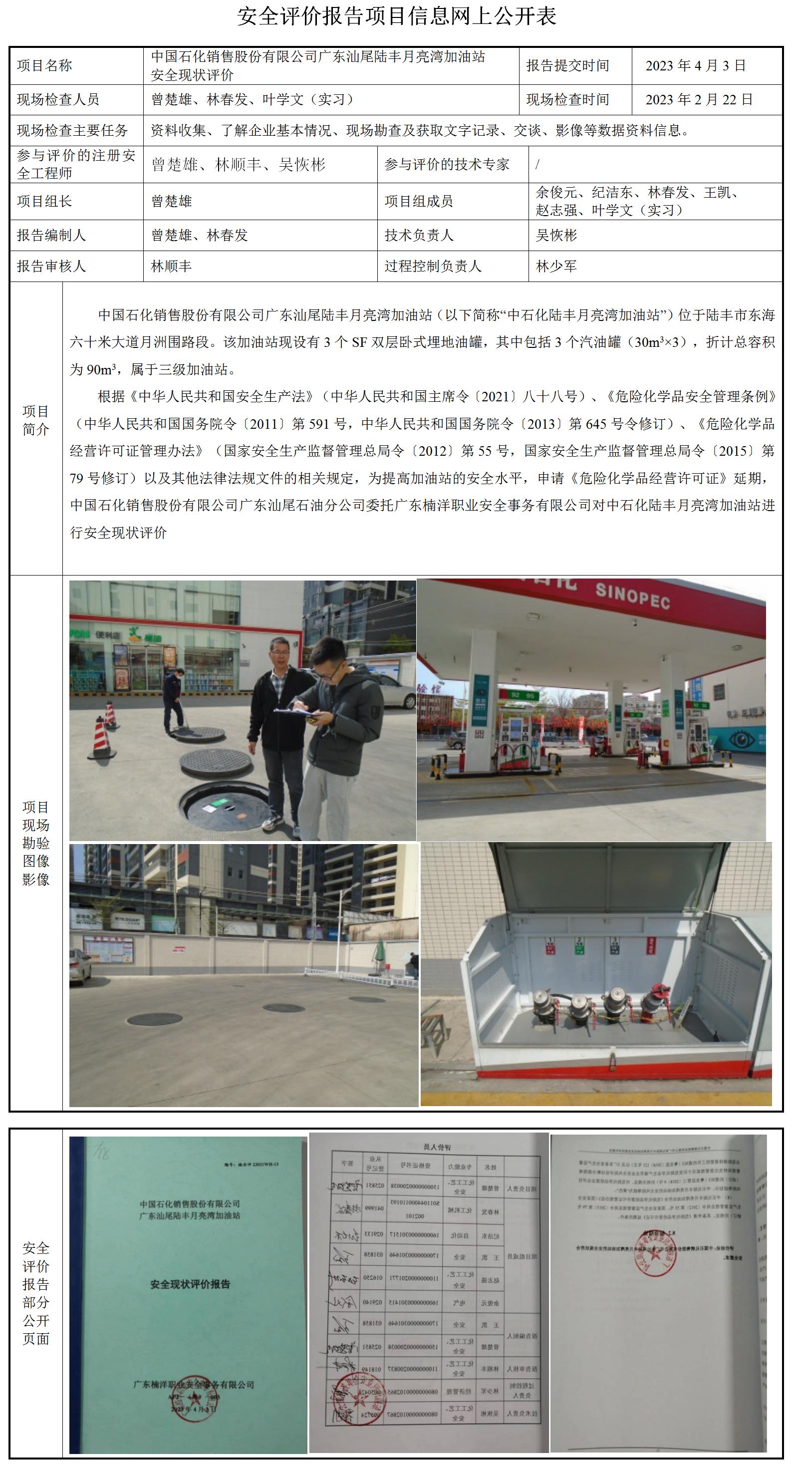 中国石化销售股份有限公司广东汕尾陆丰月亮湾加油站安全现状评价