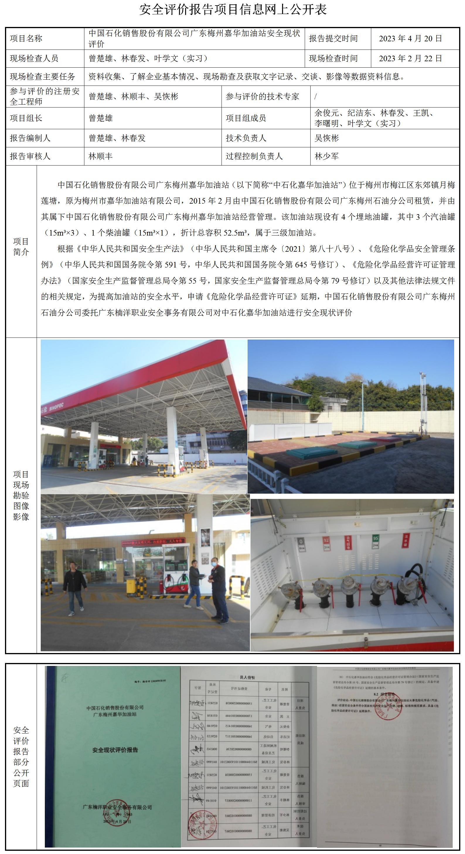 中国石化销售股份有限公司广东梅州嘉华加油站安全现状评价