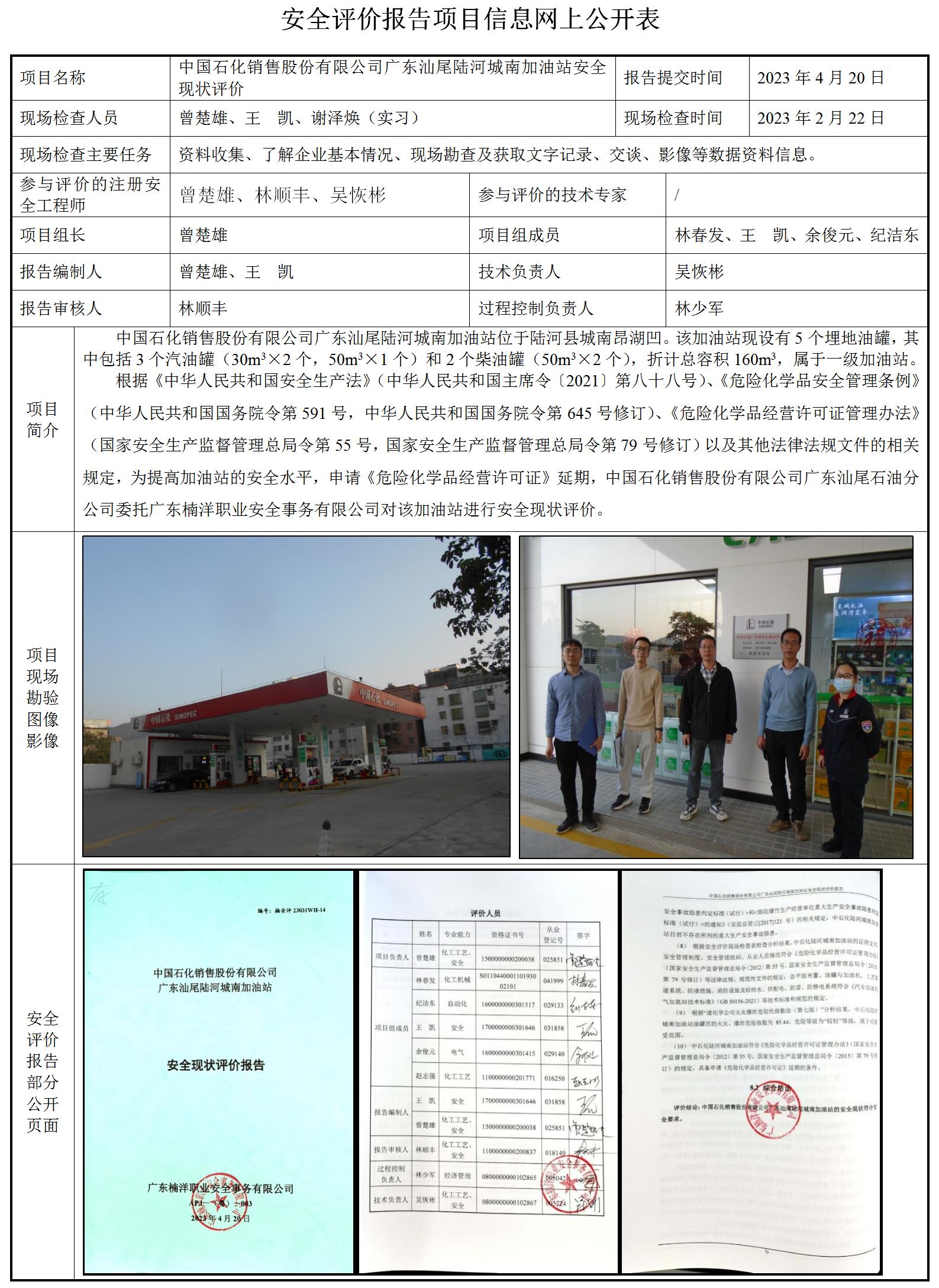 中国石化销售股份有限公司广东汕尾陆河城南加油站安全现状评价