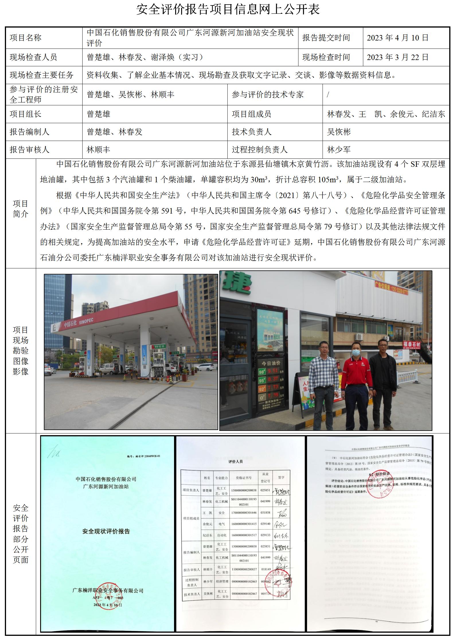 中国石化销售股份有限公司广东河源新河加油站安全现状评价
