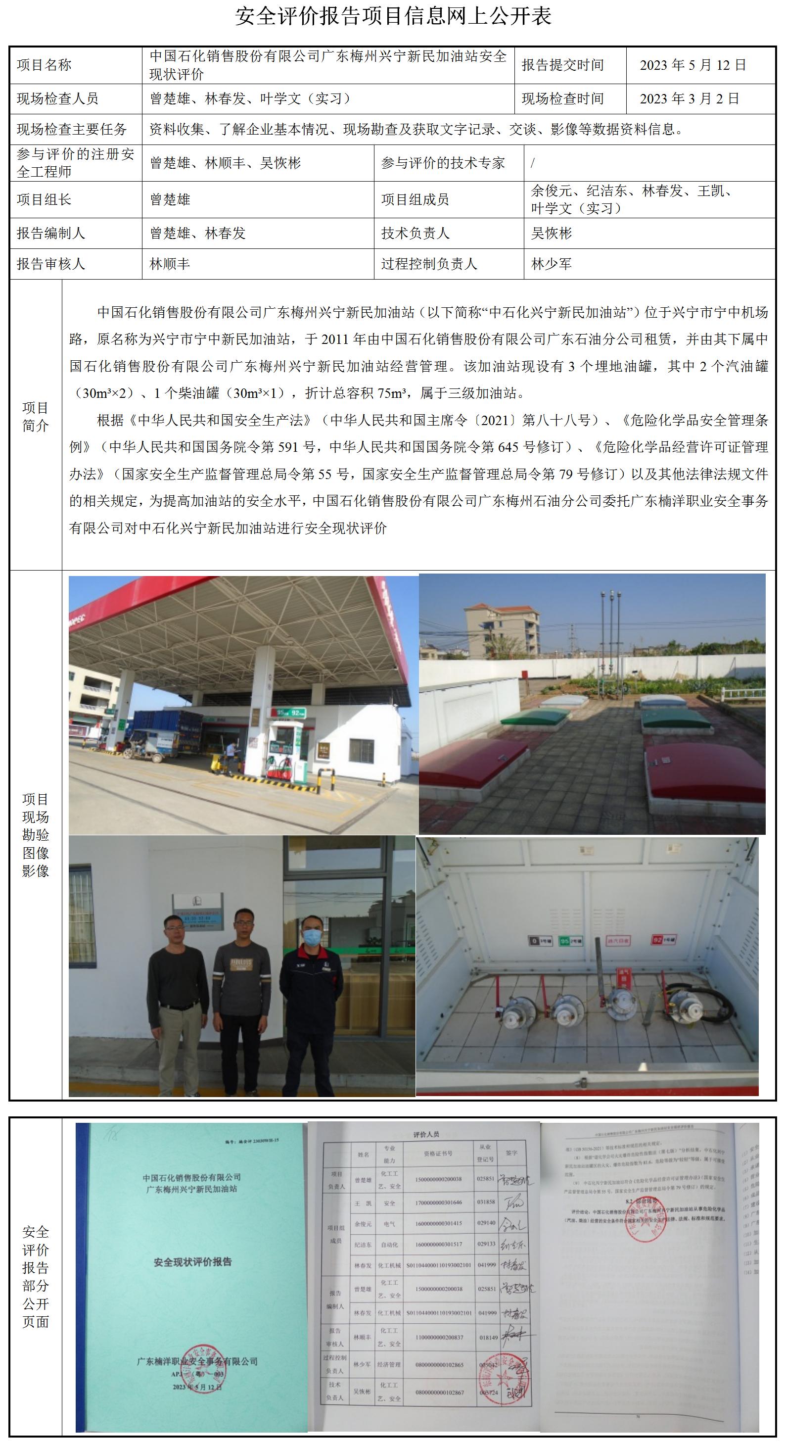 中国石化销售股份有限公司广东梅州兴宁新民加油站安全现状评价