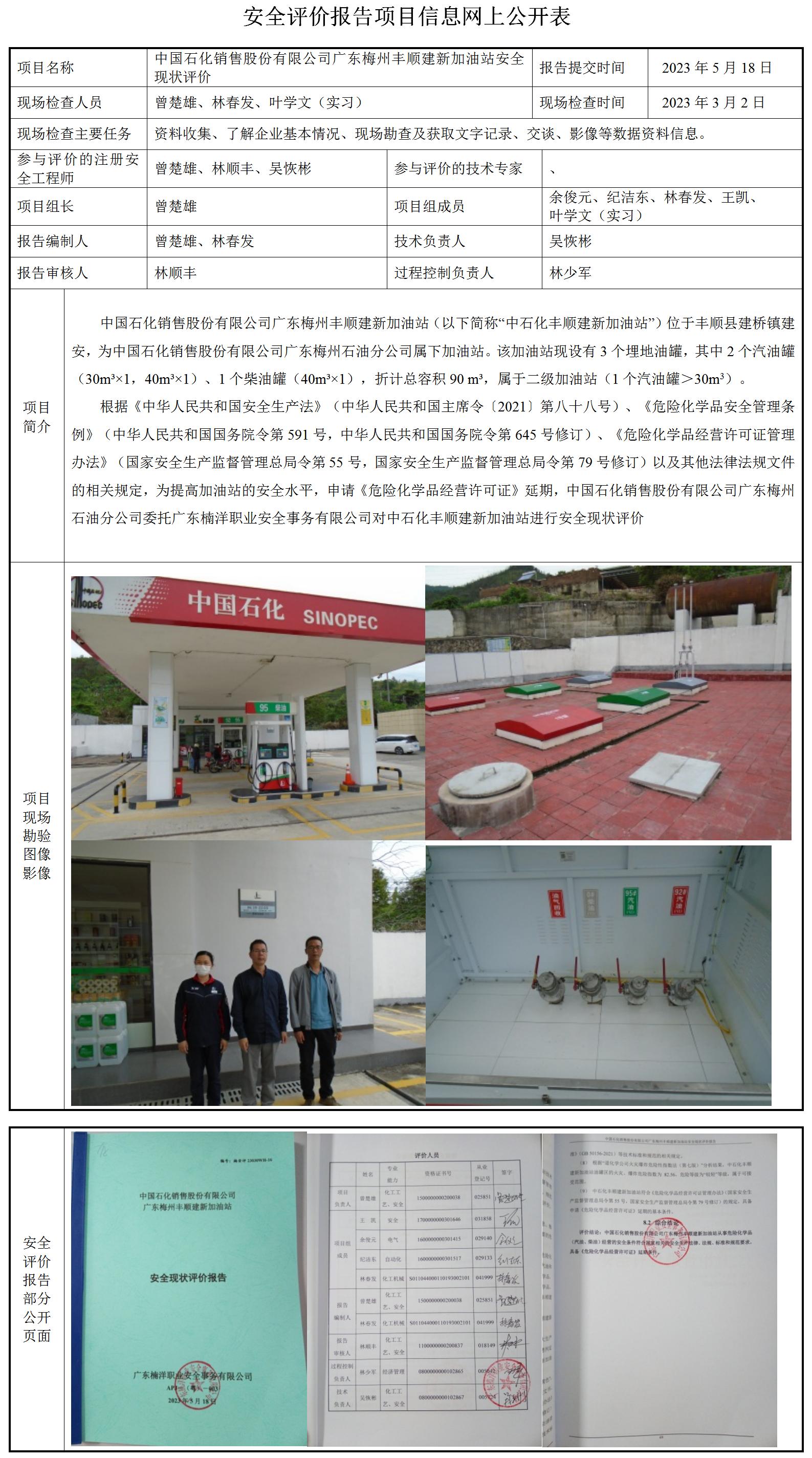 中国石化销售股份有限公司广东梅州丰顺建新加油站安全现状评价
