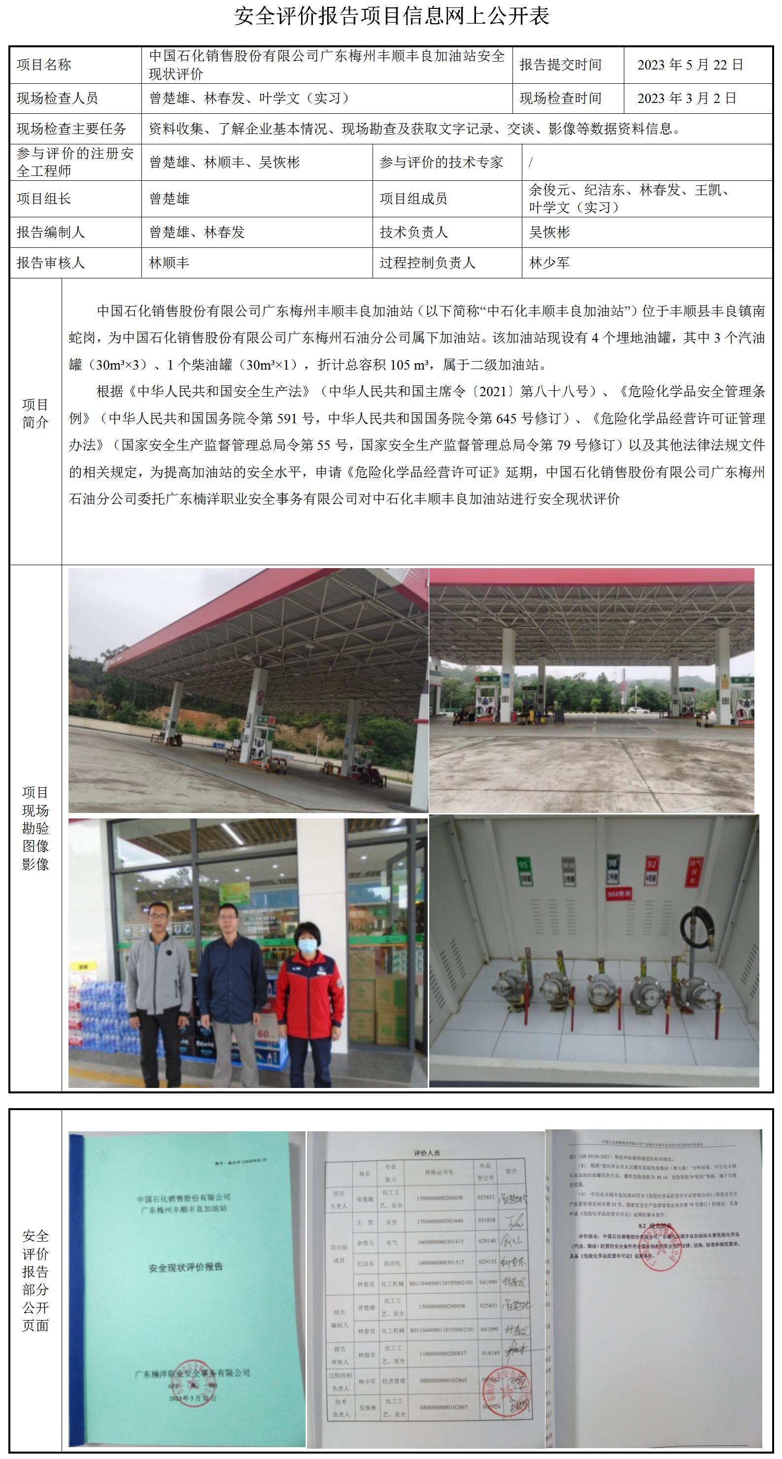 中国石化销售股份有限公司广东梅州丰顺丰良加油站安全现状评价