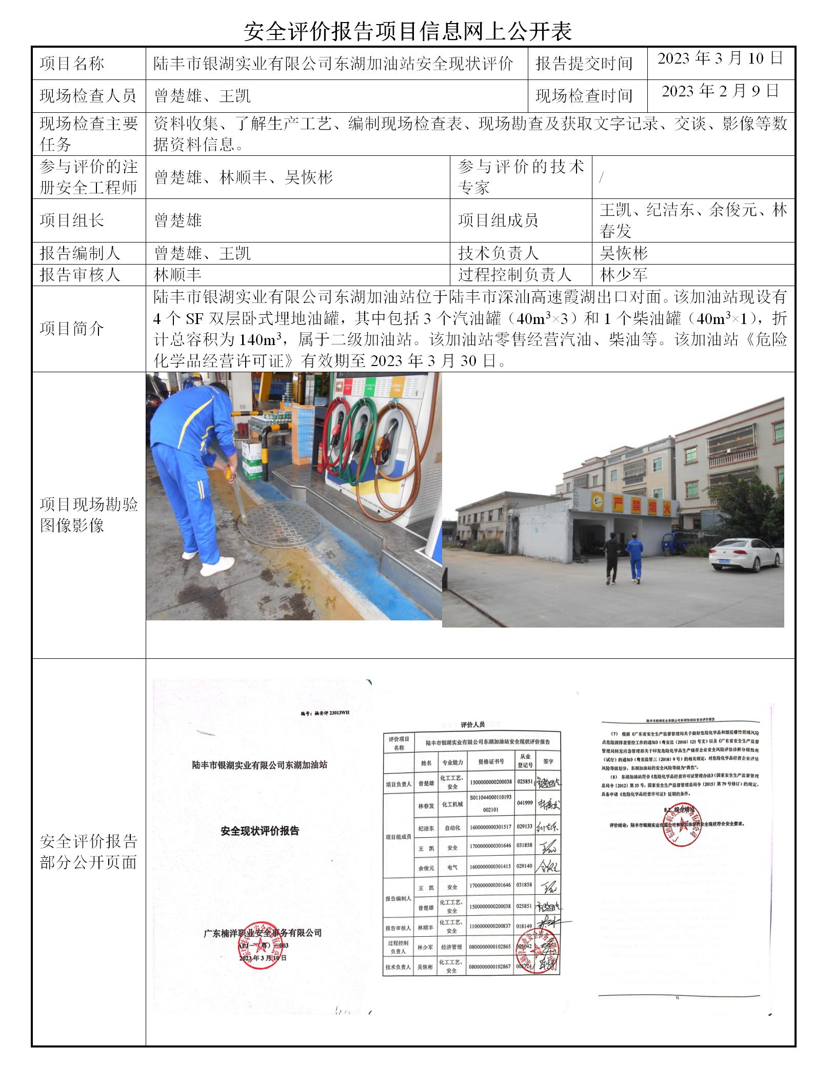 陆丰市银湖实业有限公司东湖加油站安全现状评价