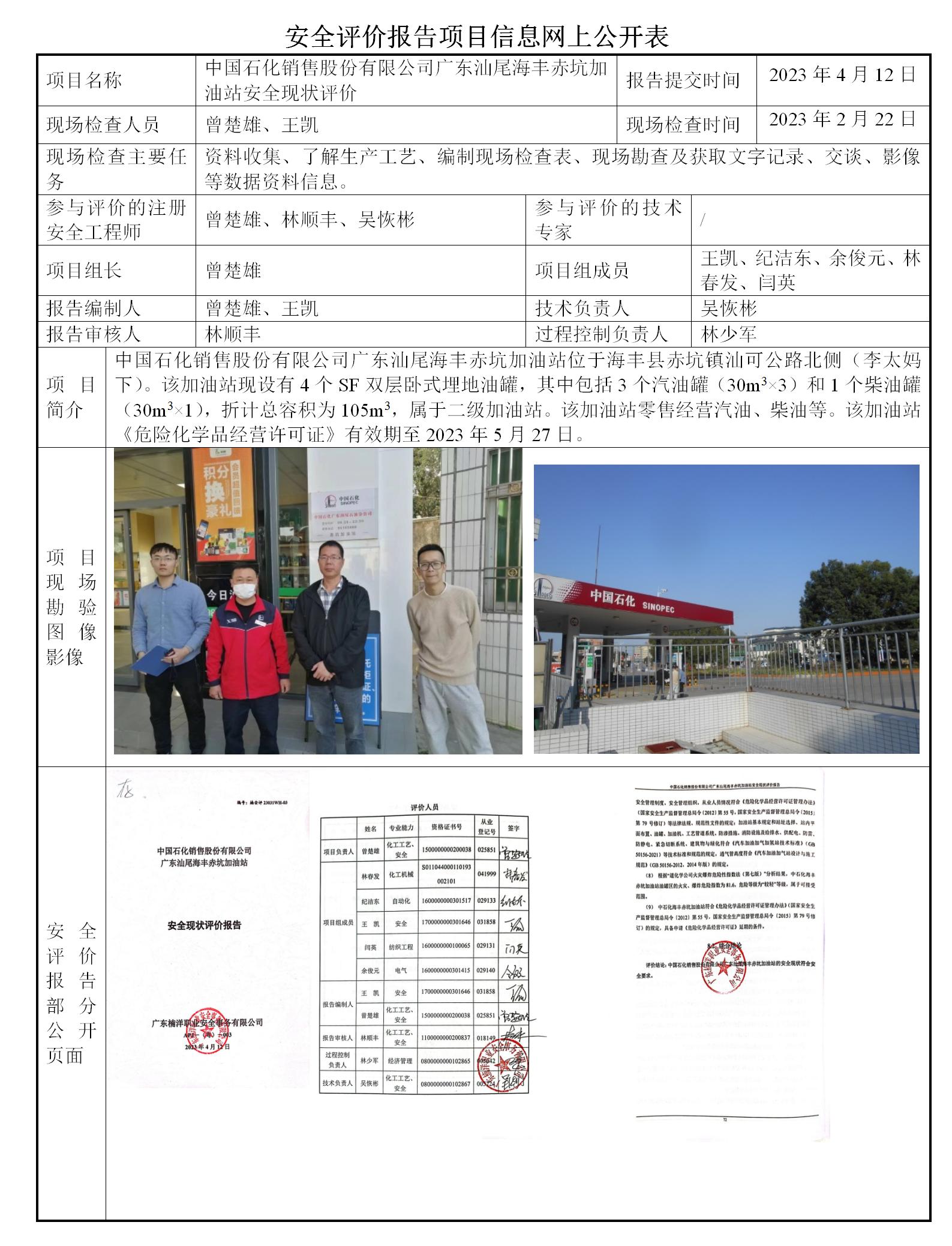 中国石化销售股份有限公司广东汕尾海丰赤坑加油站安全现状评价