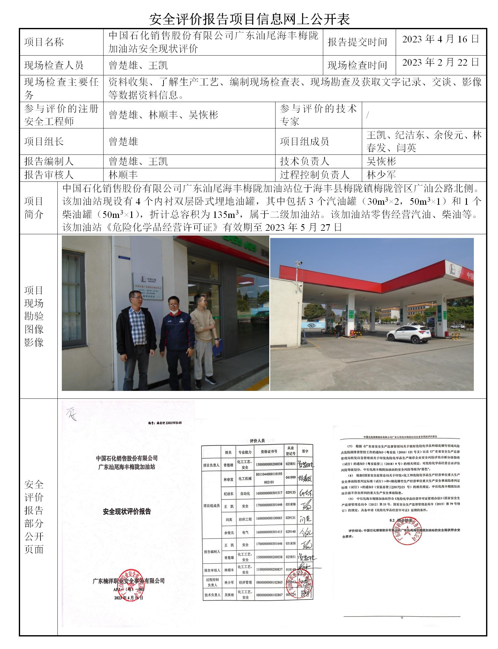 中国石化销售股份有限公司广东汕尾海丰梅陇加油站安全现状评价