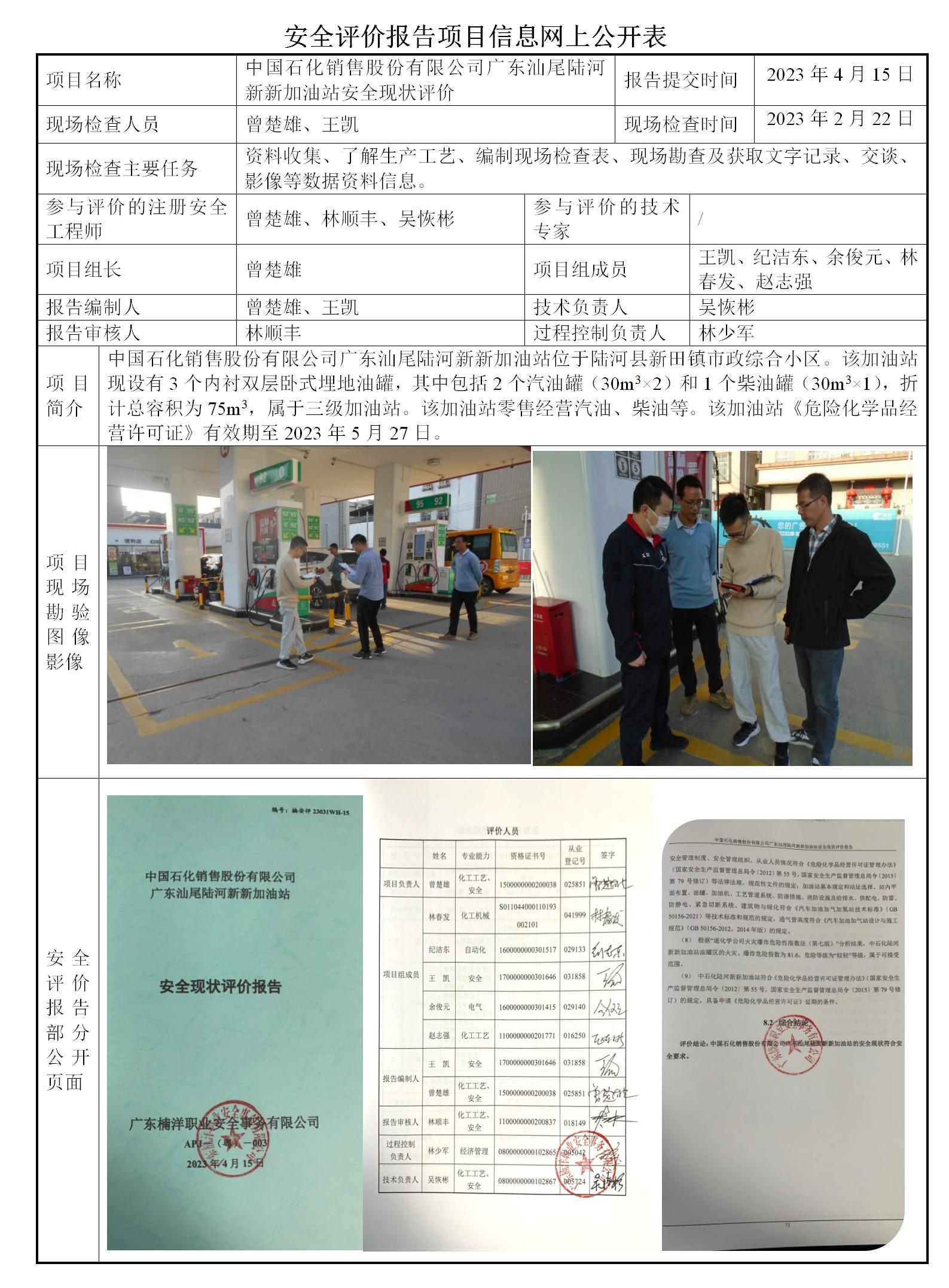 中国石化销售股份有限公司广东汕尾陆河新新加油站安全现状评价