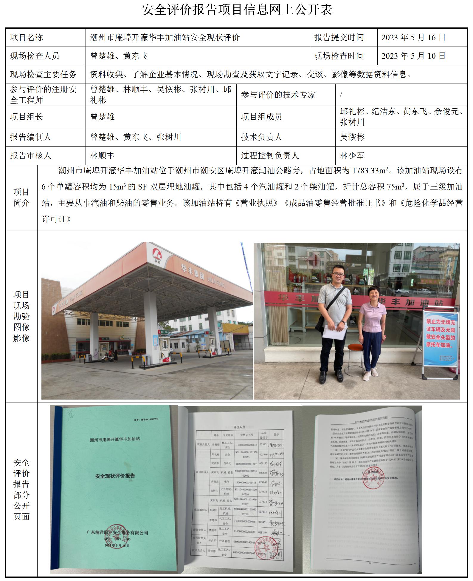 潮州市潮安区庵埠镇赐茶加油站安全现状评价