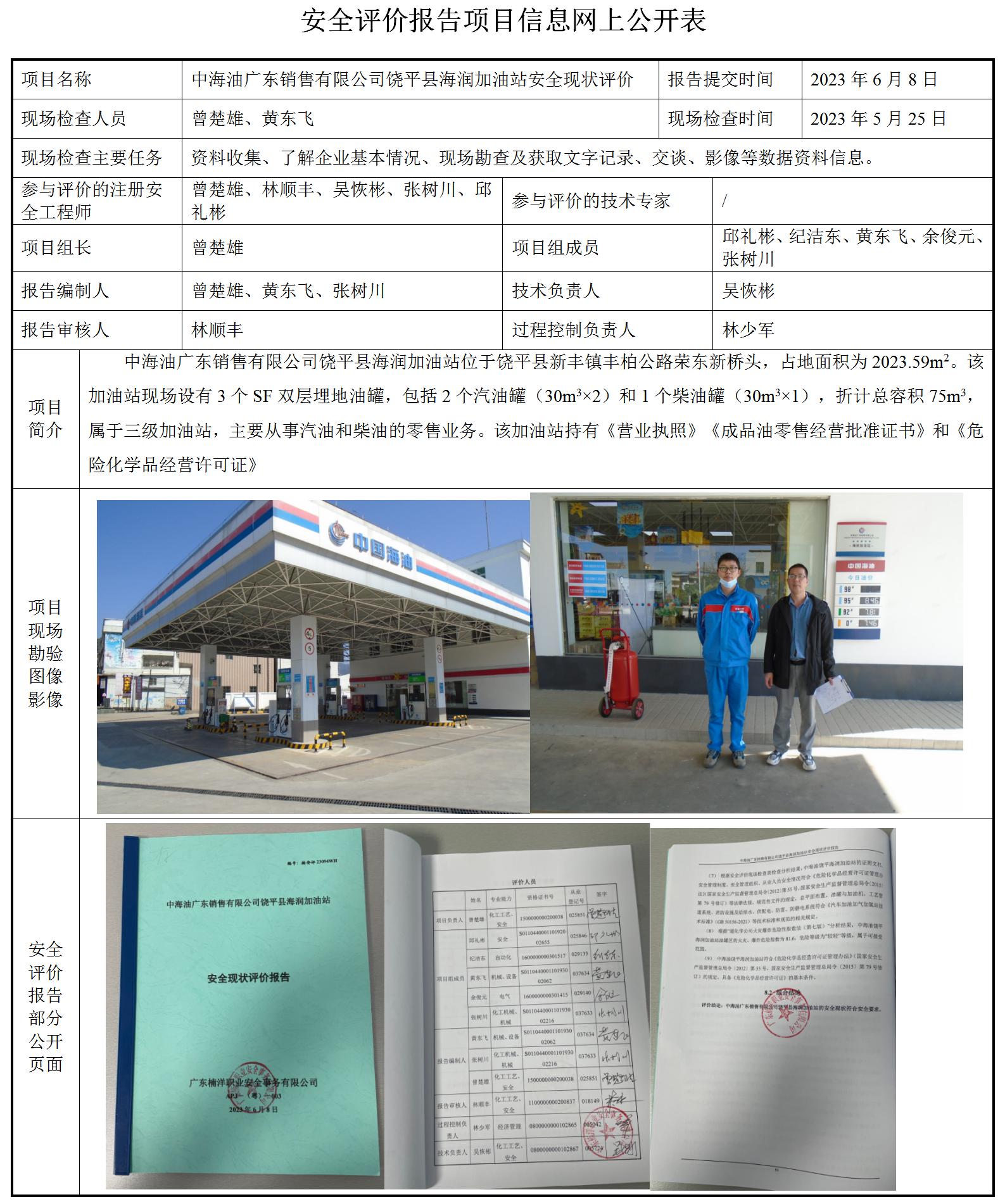 中海油广东销售有限公司饶平县海润加油站安全现状评价