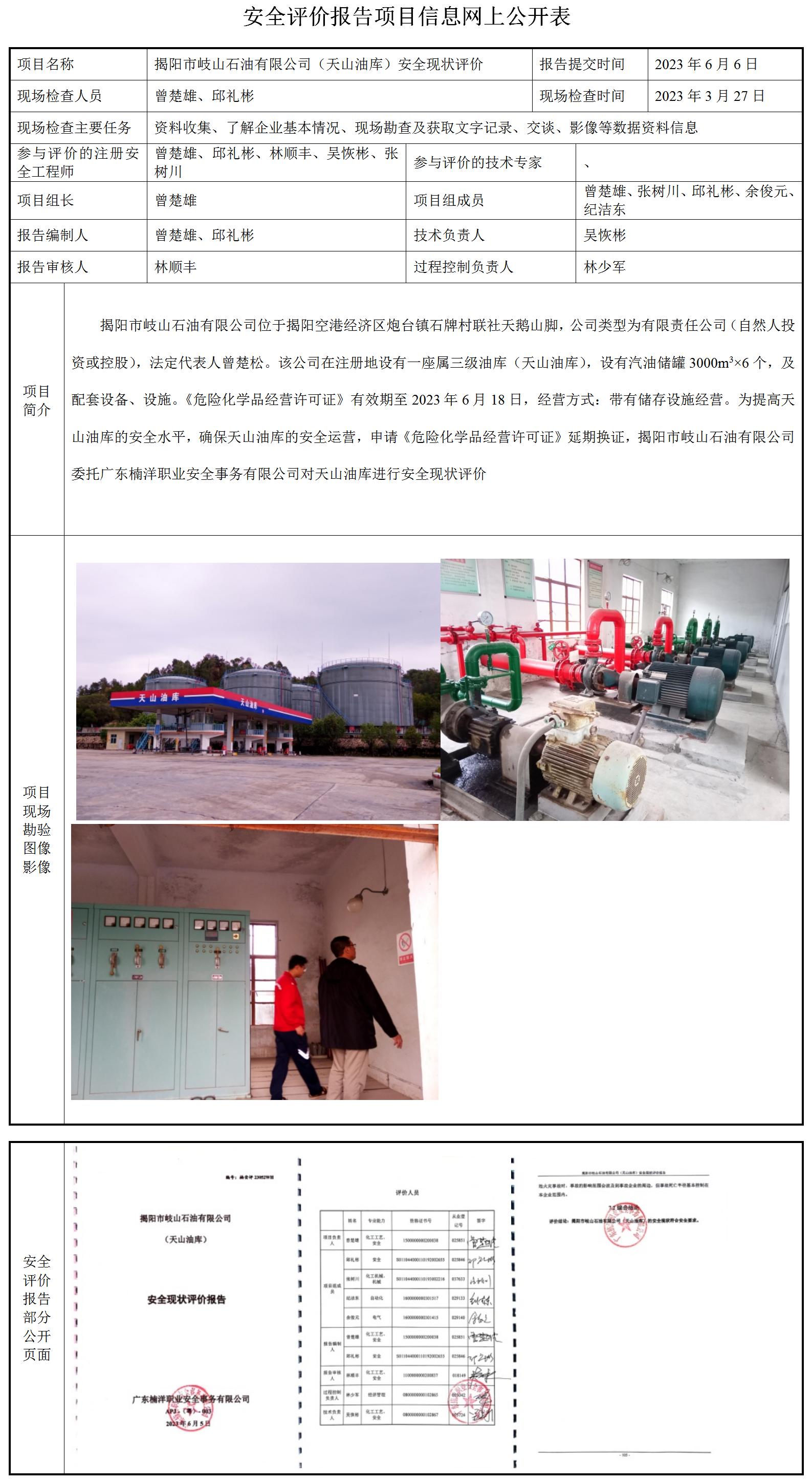 揭阳市岐山石油有限公司(天山油库)安全现状评价