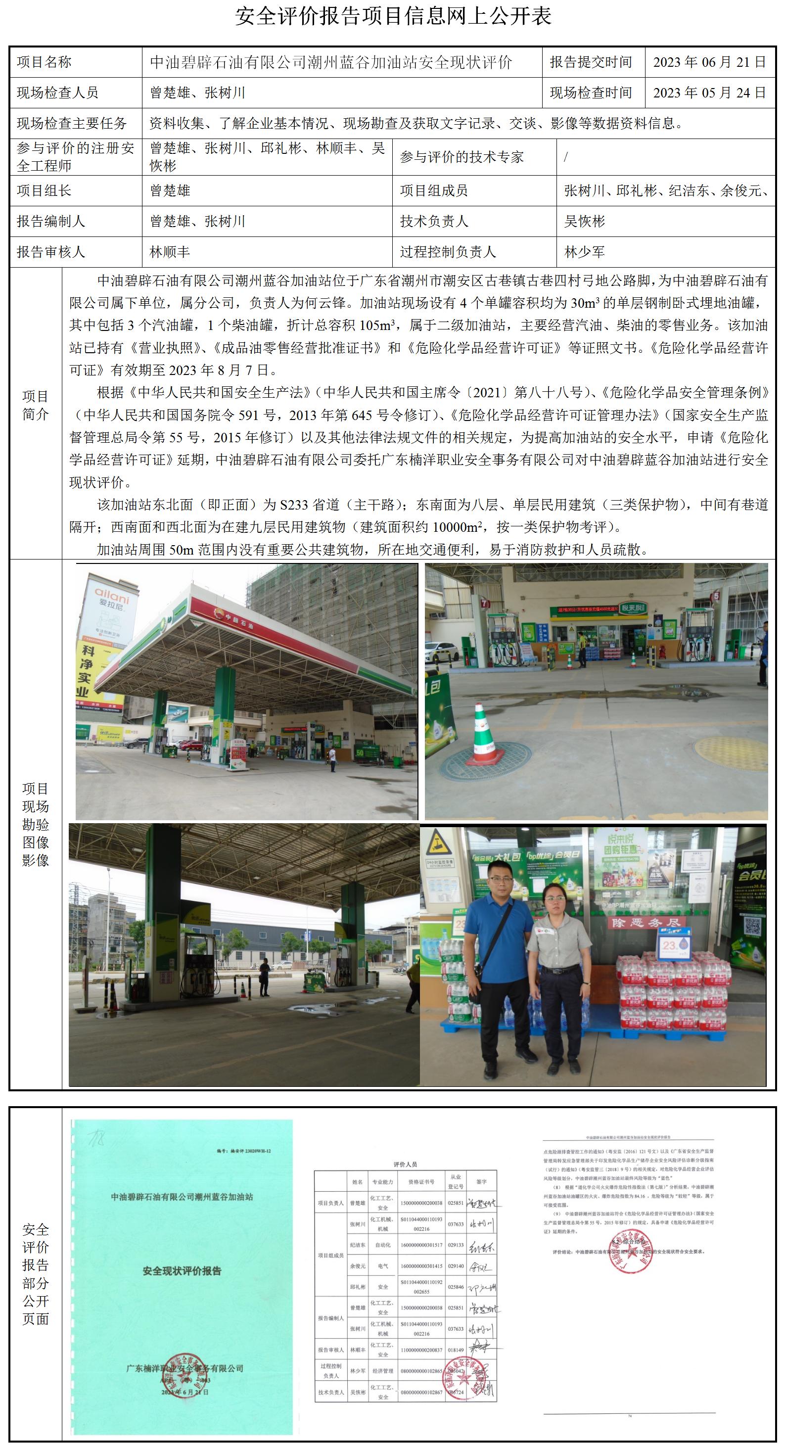 中油碧辟石油有限公司潮州蓝谷加油站安全现状评价