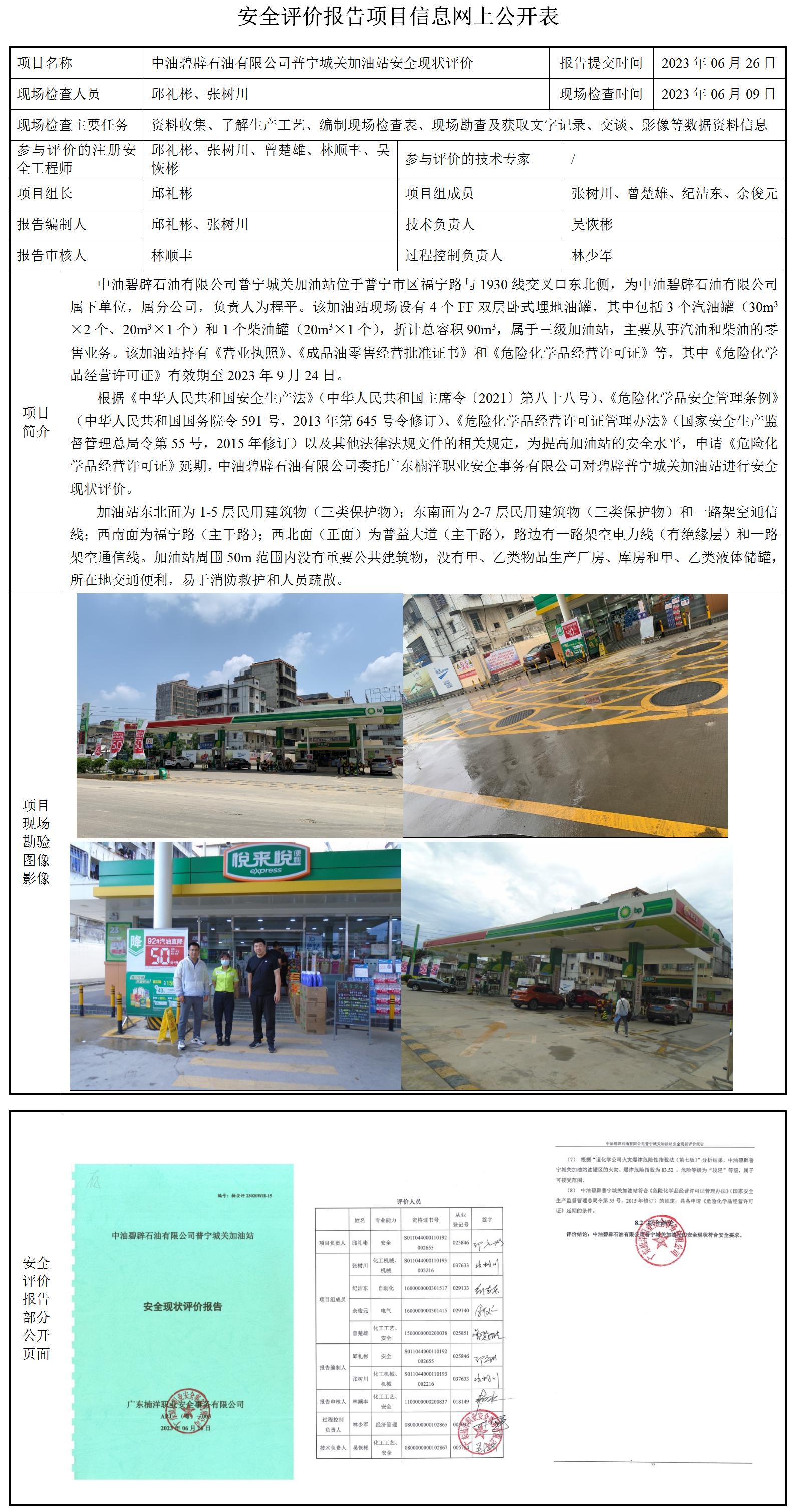中油碧辟石油有限公司普宁城关加油站安全现状评价
