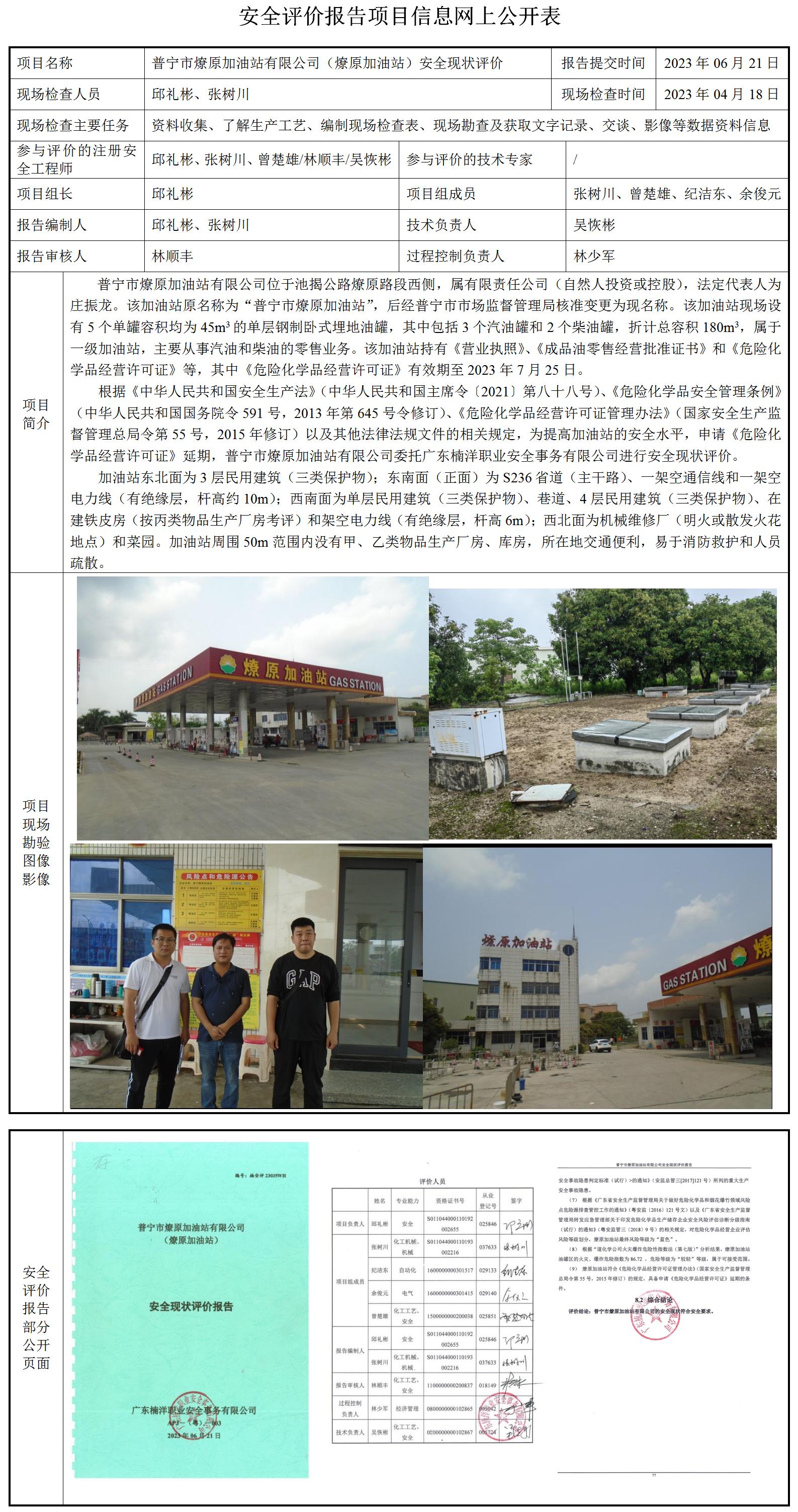 普宁市燎原加油站有限公司(燎原加油站)安全现状评价
