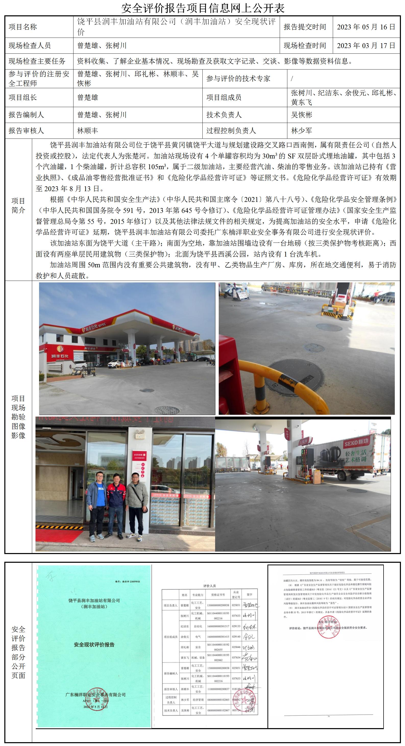 饶平县润丰加油站有限公司(润丰加油站)安全现状评价