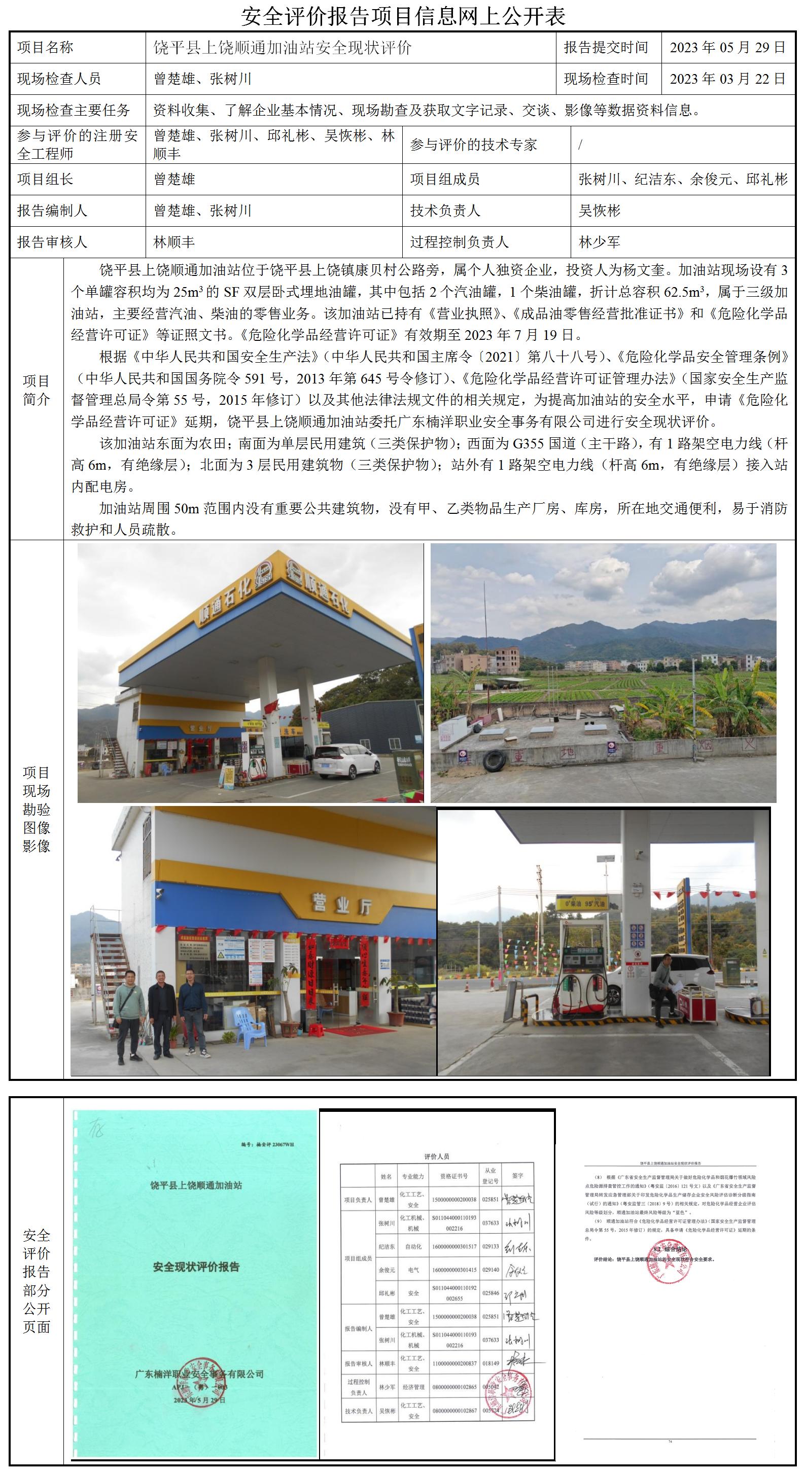 饶平县上饶顺通加油站安全现状评价