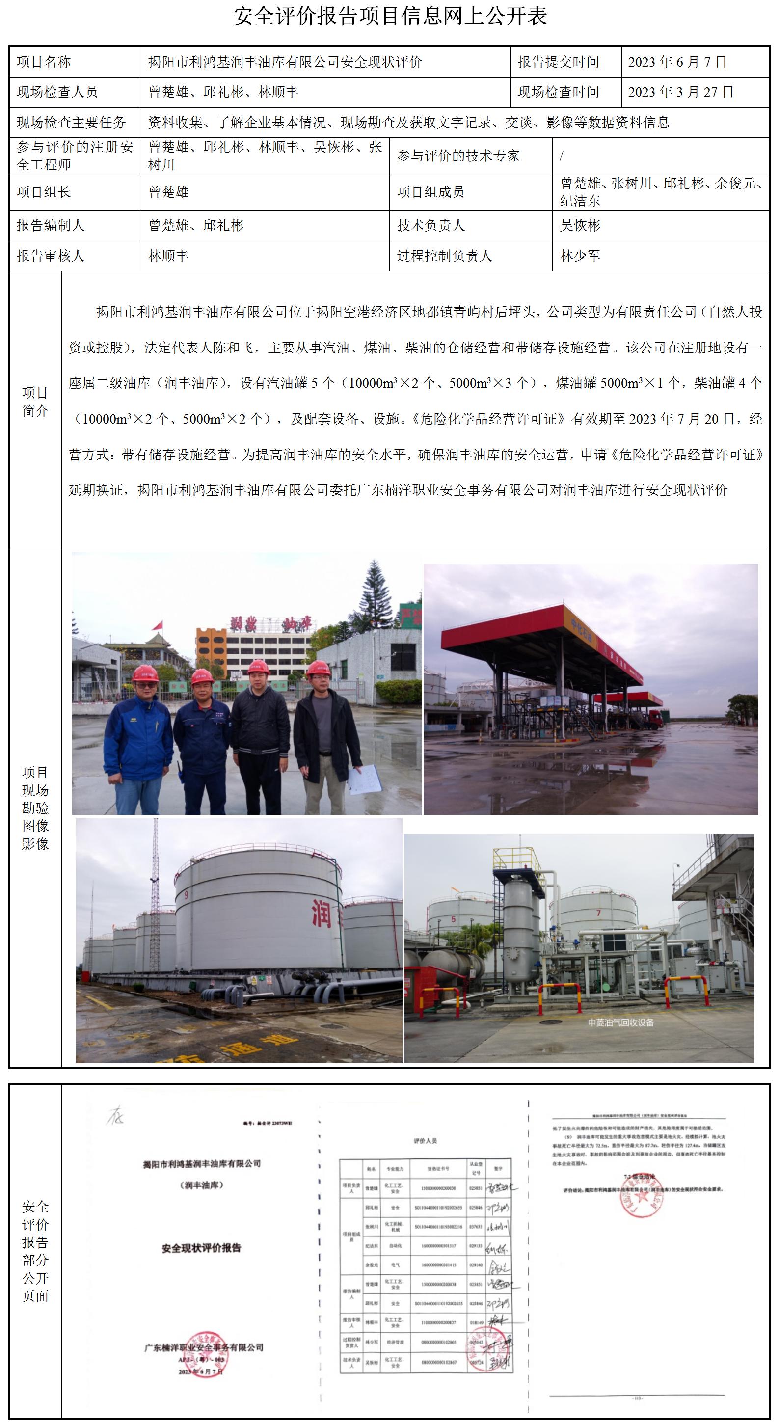 揭阳市利鸿基润丰油库有限公司(润丰油库)安全现状评价