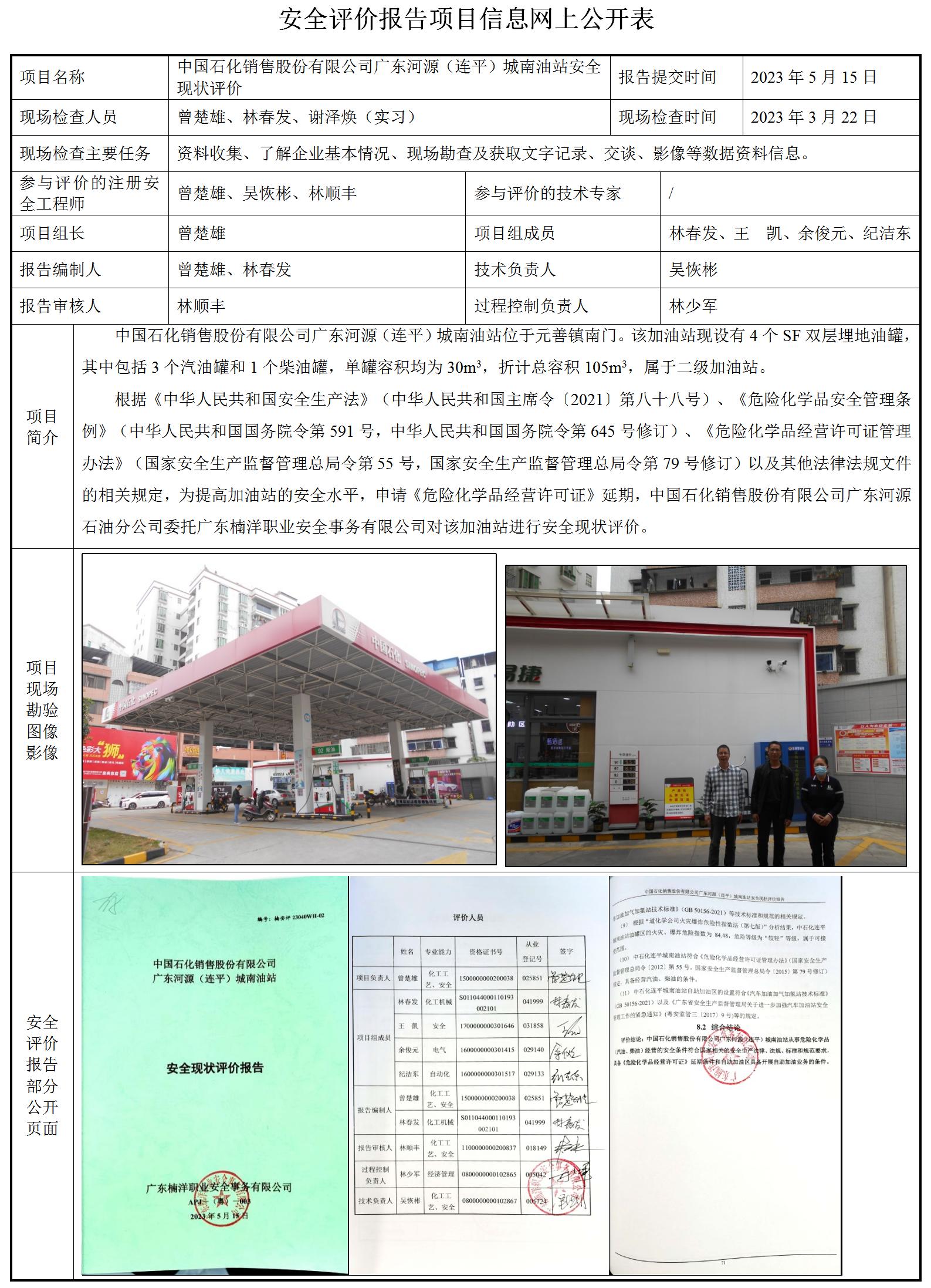 中国石化销售股份有限公司广东河源(连平)城南油站安全现状评价