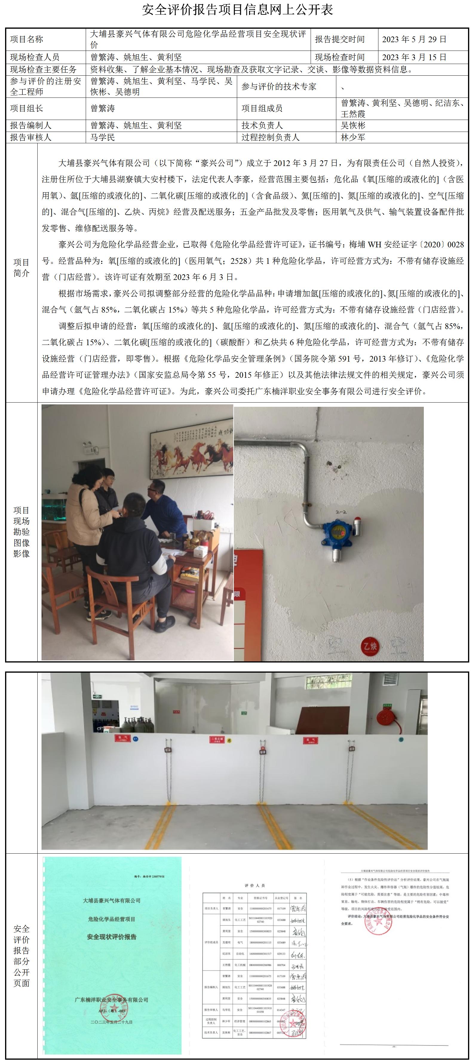 大埔县豪兴气体有限公司危险化学品经营项目安全现状评价