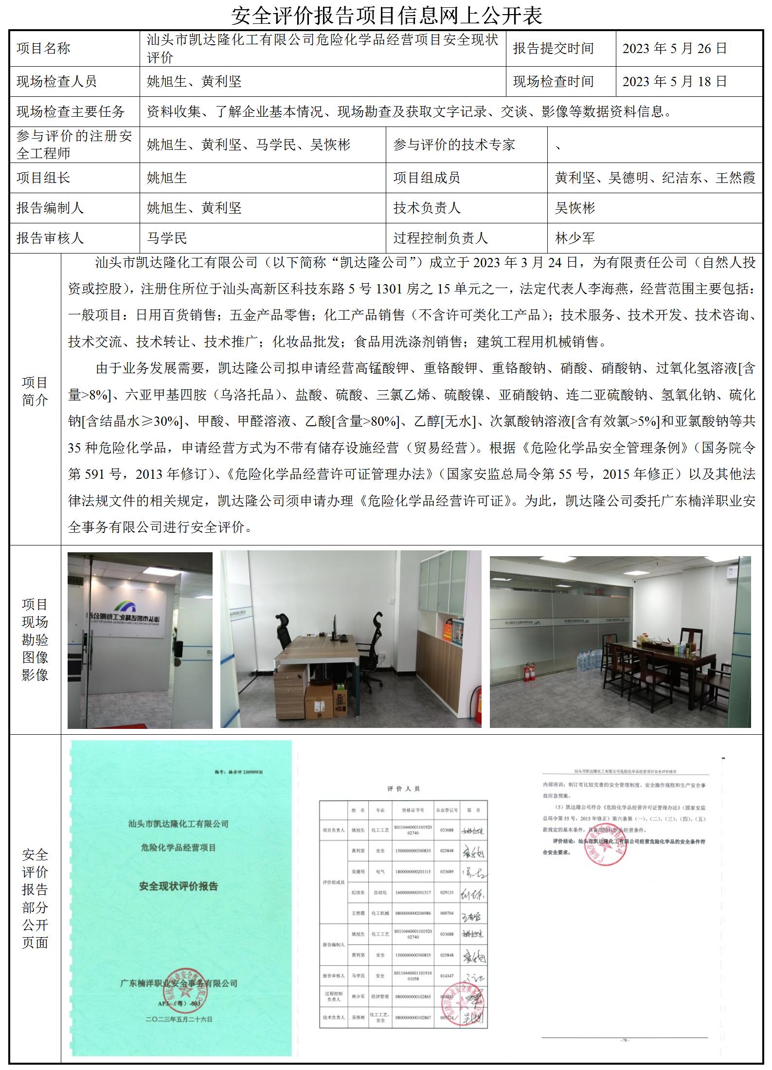 汕头市凯达隆化工有限公司危险化学品经营项目安全现状评价