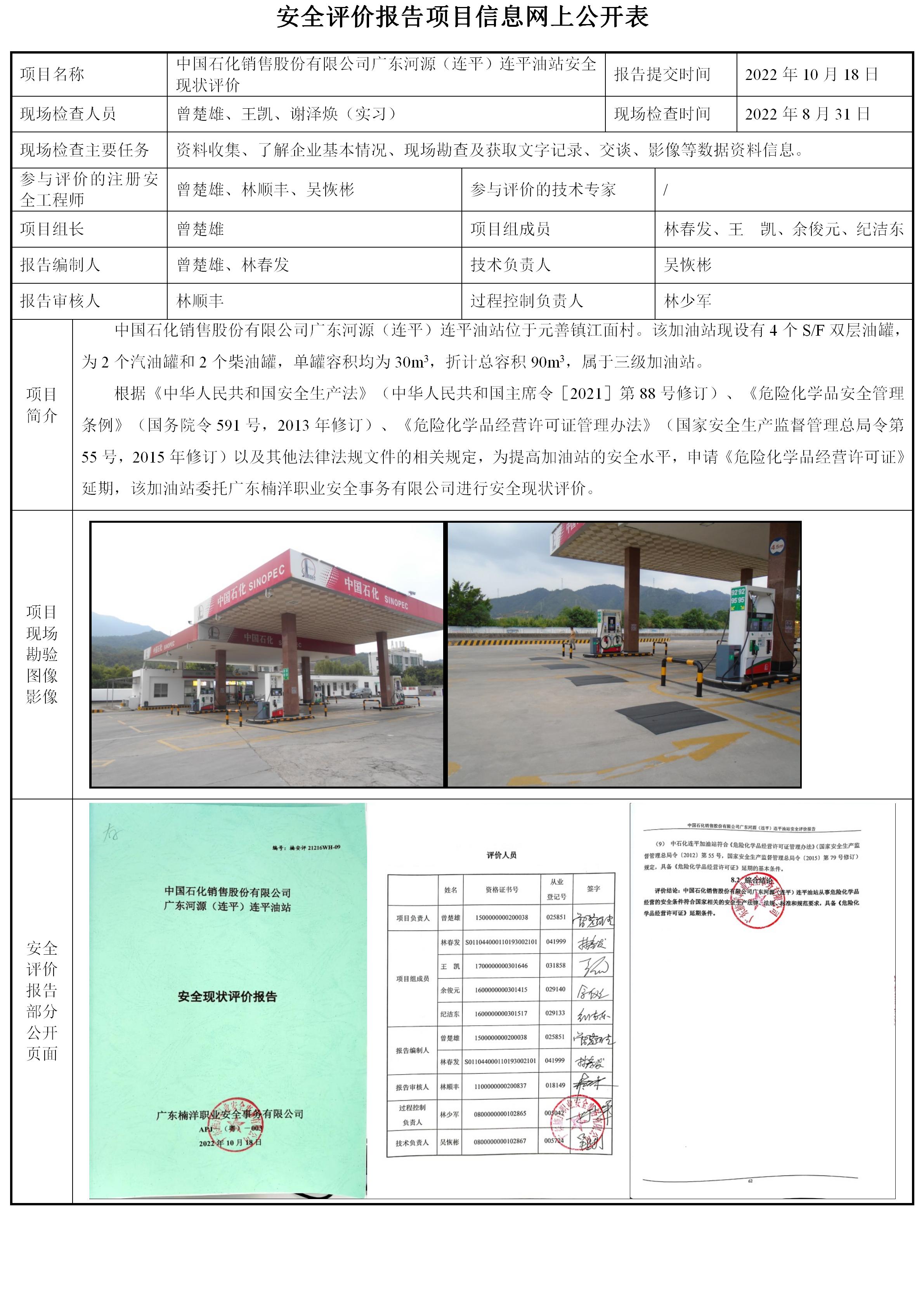 中国石化销售股份有限公司广东河源(连平)连平油站安全现状评价