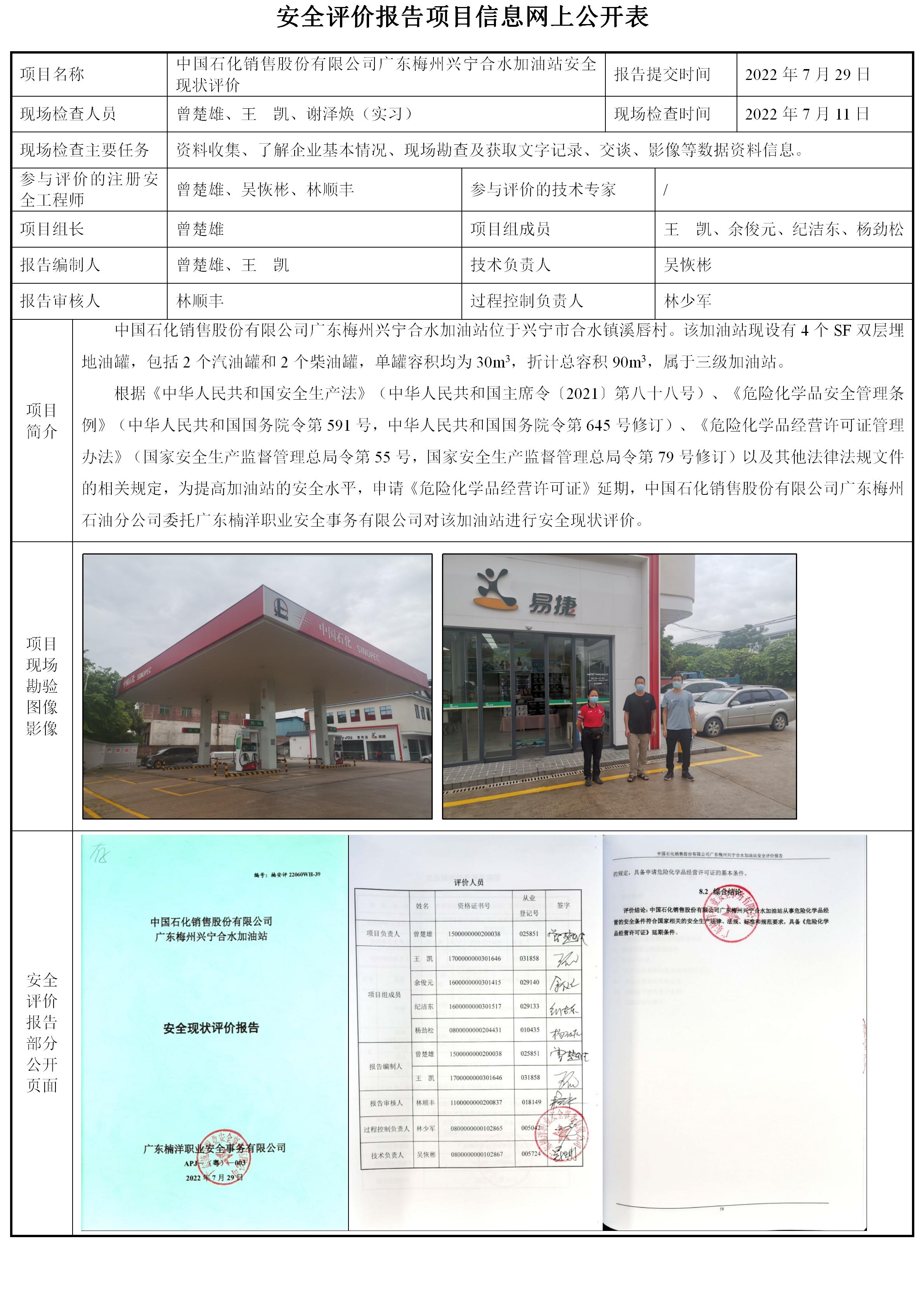 中国石化销售股份有限公司广东梅州兴宁合水加油站安全现状评价