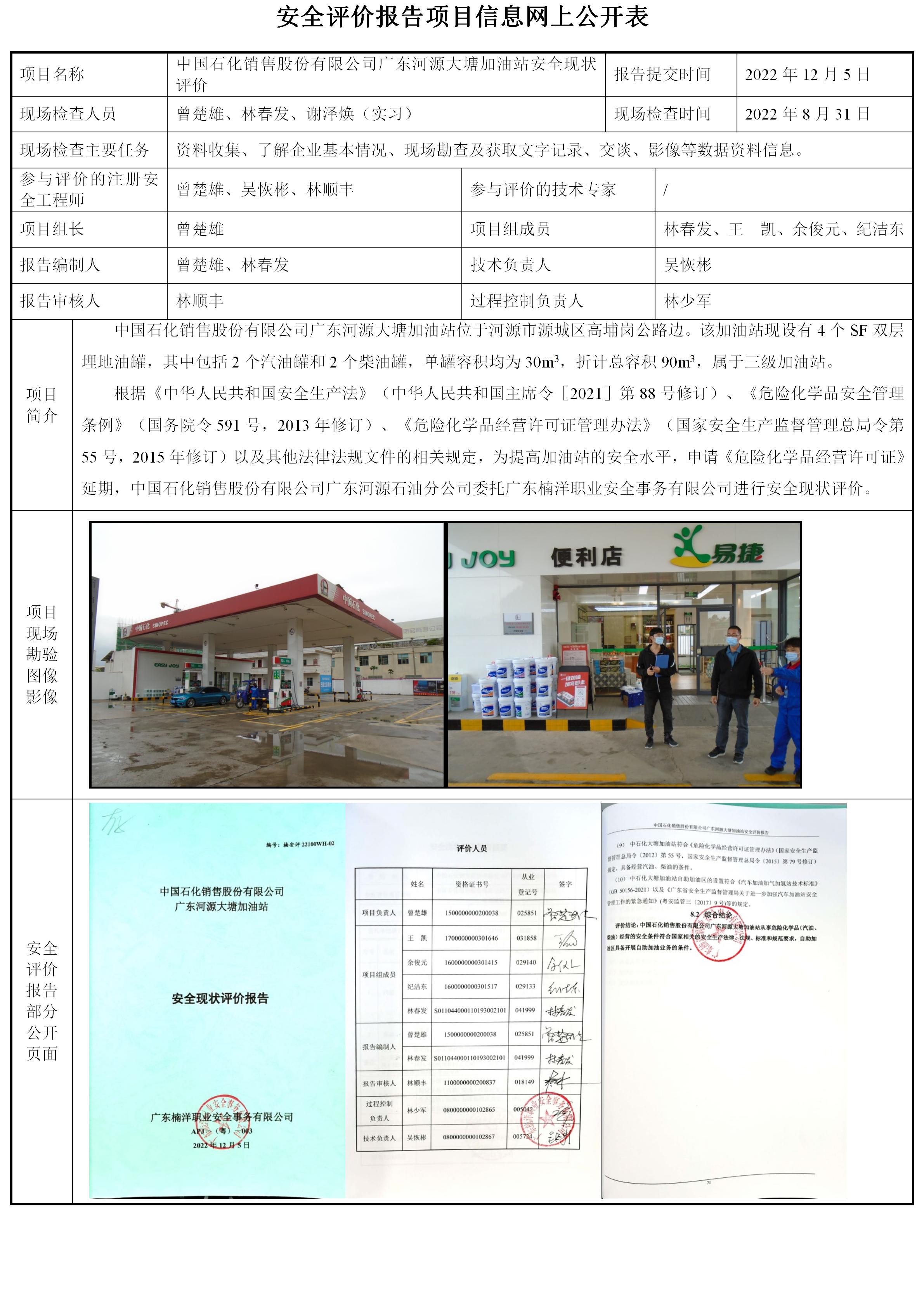 中国石化销售股份有限公司广东河源大塘加油站安全现状评价