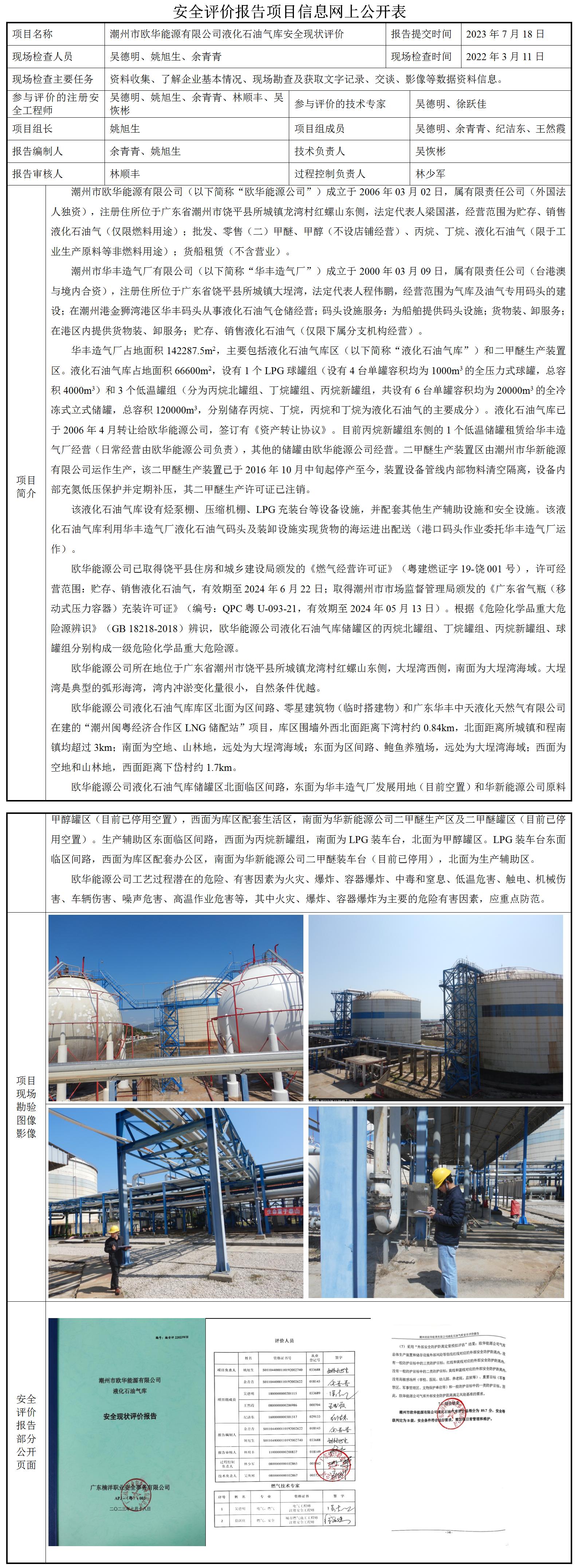 潮州市欧华能源有限公司液化石油气库安全现状评价