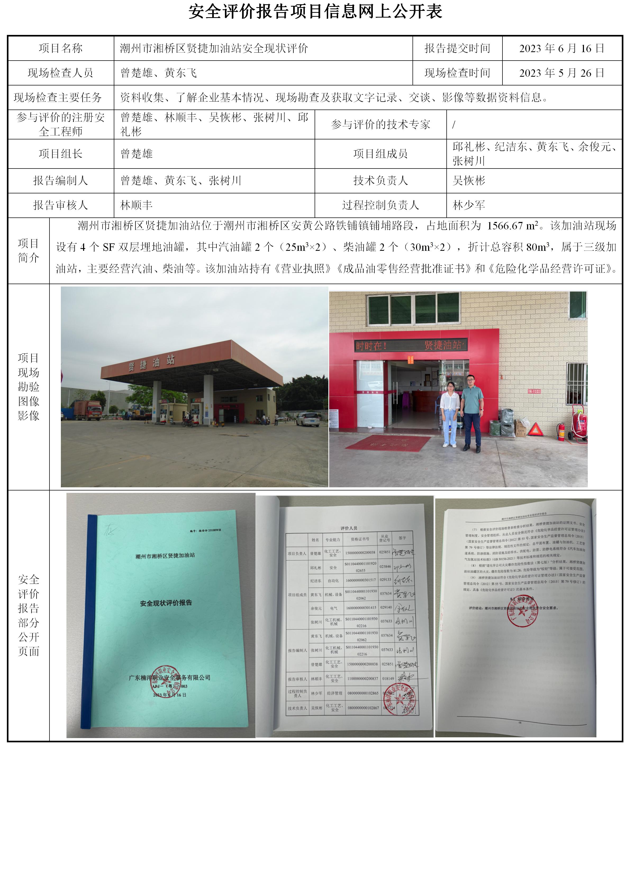 潮州市湘桥区贤捷加油站安全现状评价