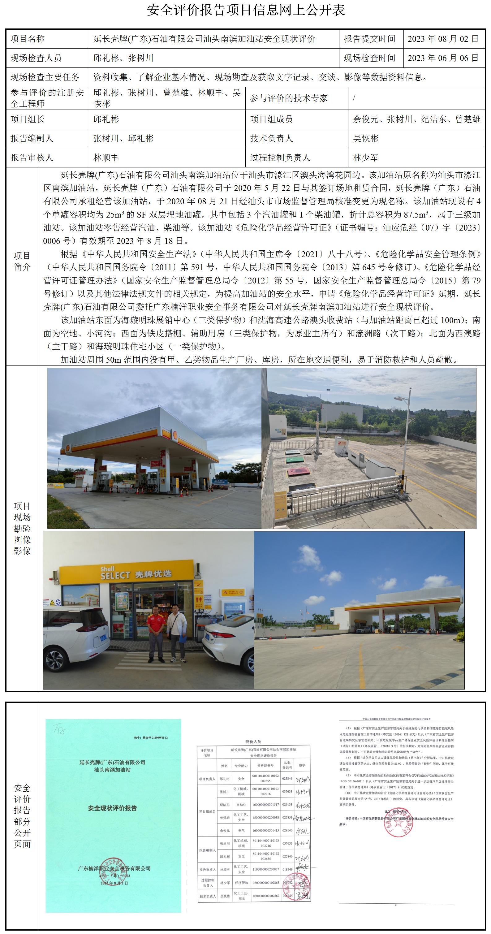 延长壳牌(广东)石油有限公司汕头南滨加油站安全现状评价