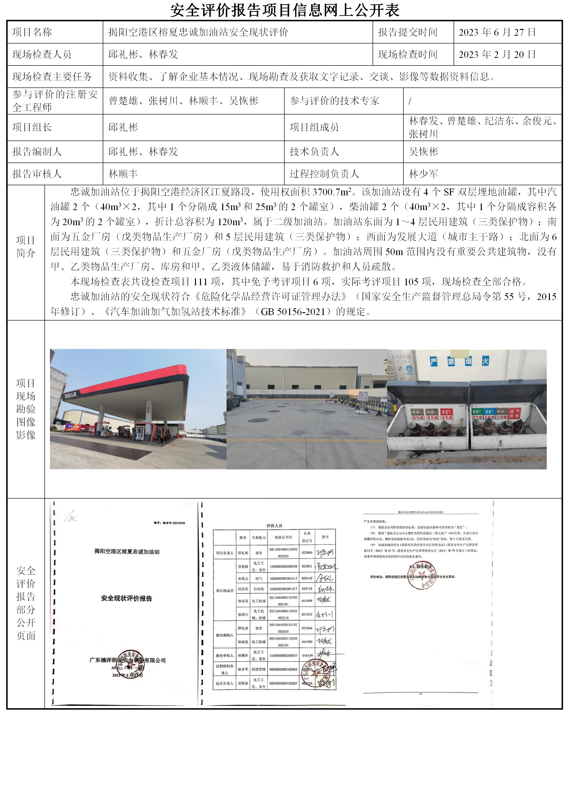 揭阳空港区榕夏忠诚加油站安全现状评价