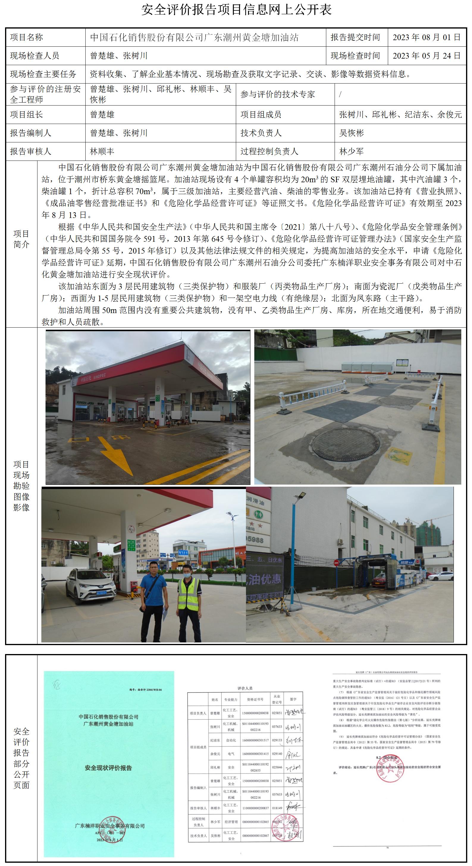 中国石化销售股份有限公司广东潮州黄金塘加油站安全现状评价