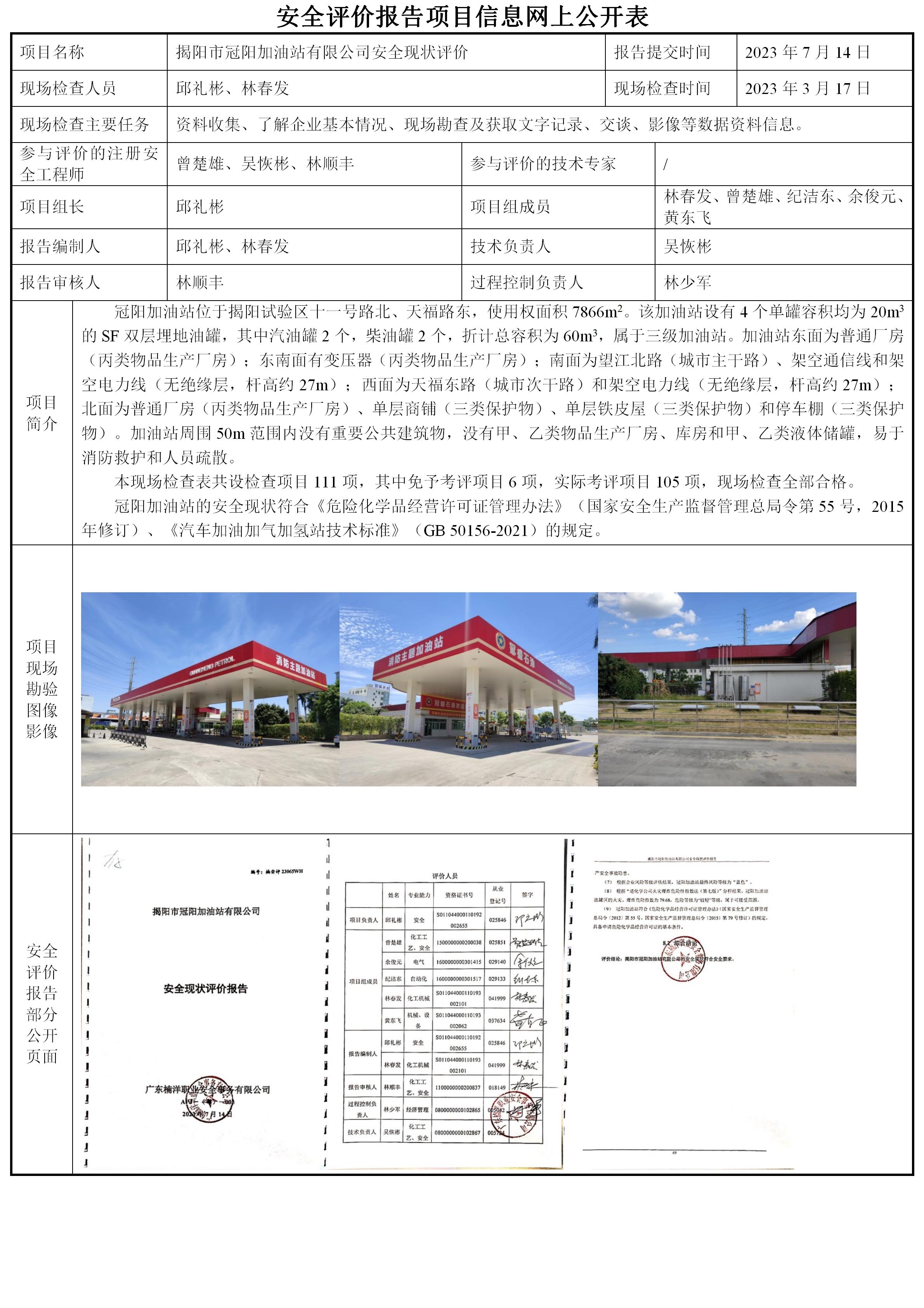 揭阳市冠阳加油站有限公司安全现状评价
