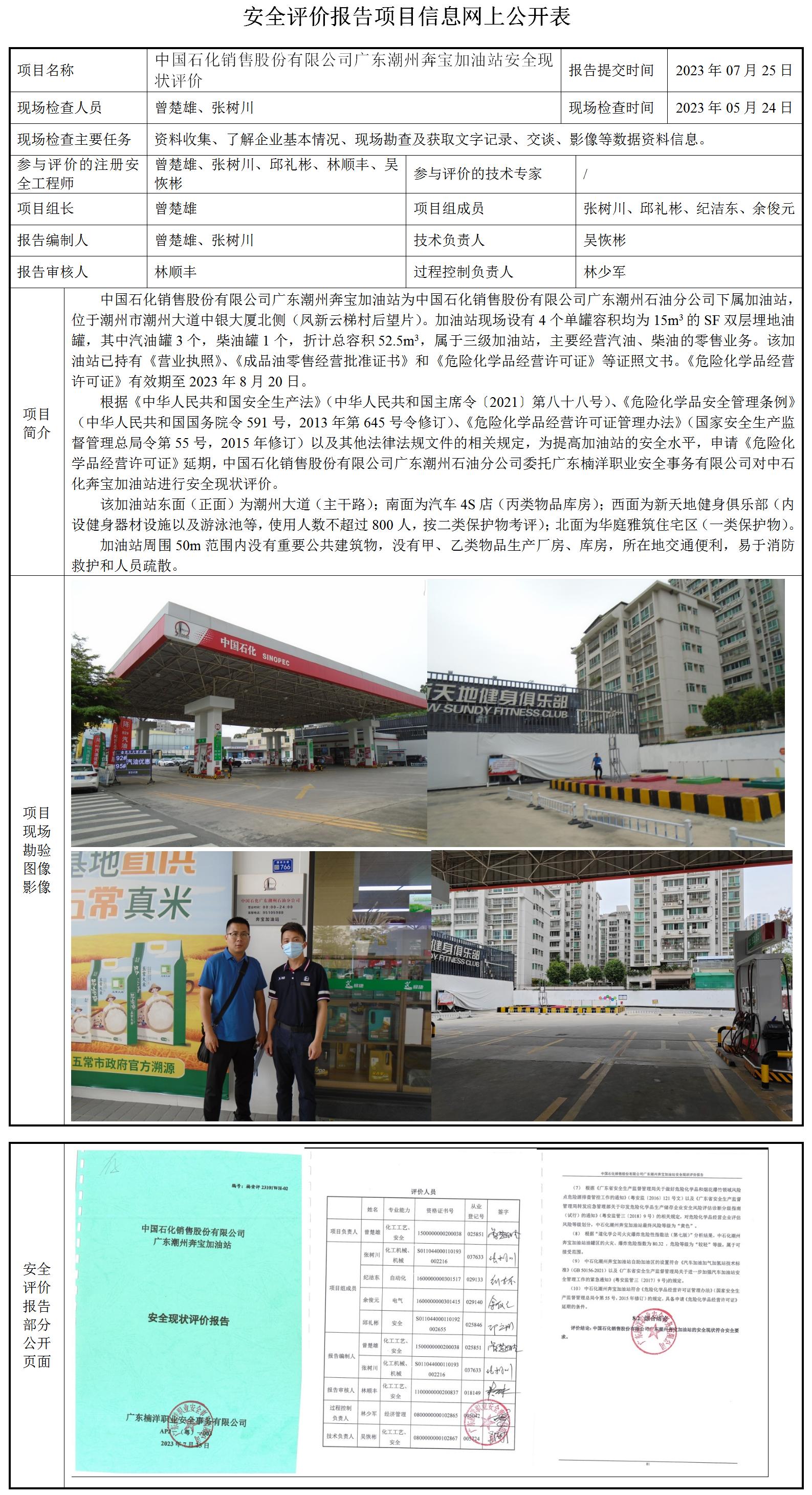 中国石化销售股份有限公司广东潮州奔宝加油站安全现状评价